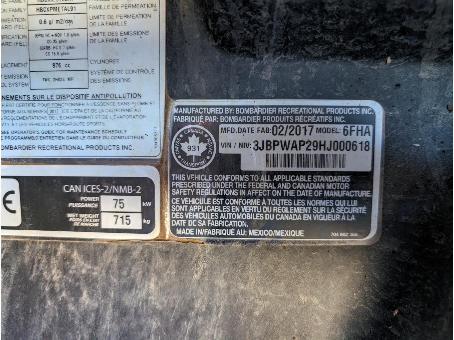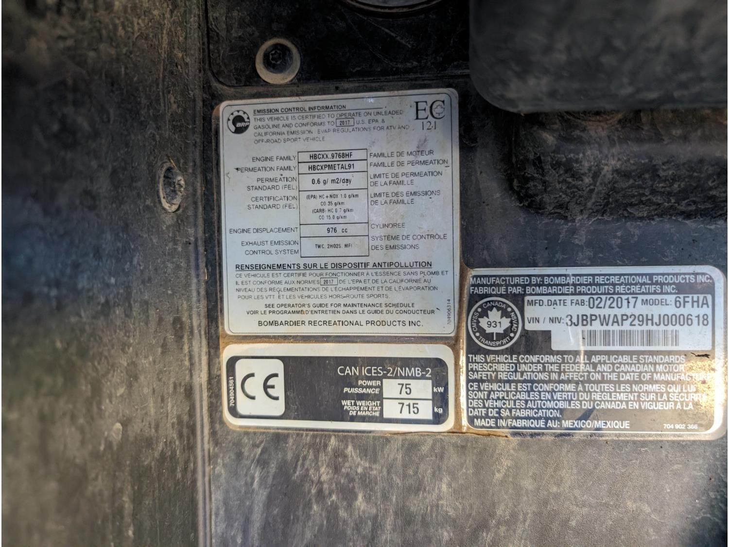 1000 cc engine, automatic transmission, open canopy, 2 passengers, A/C, heater, windshield, front winch, receiver hitch, 30X10.00-14NHS tires