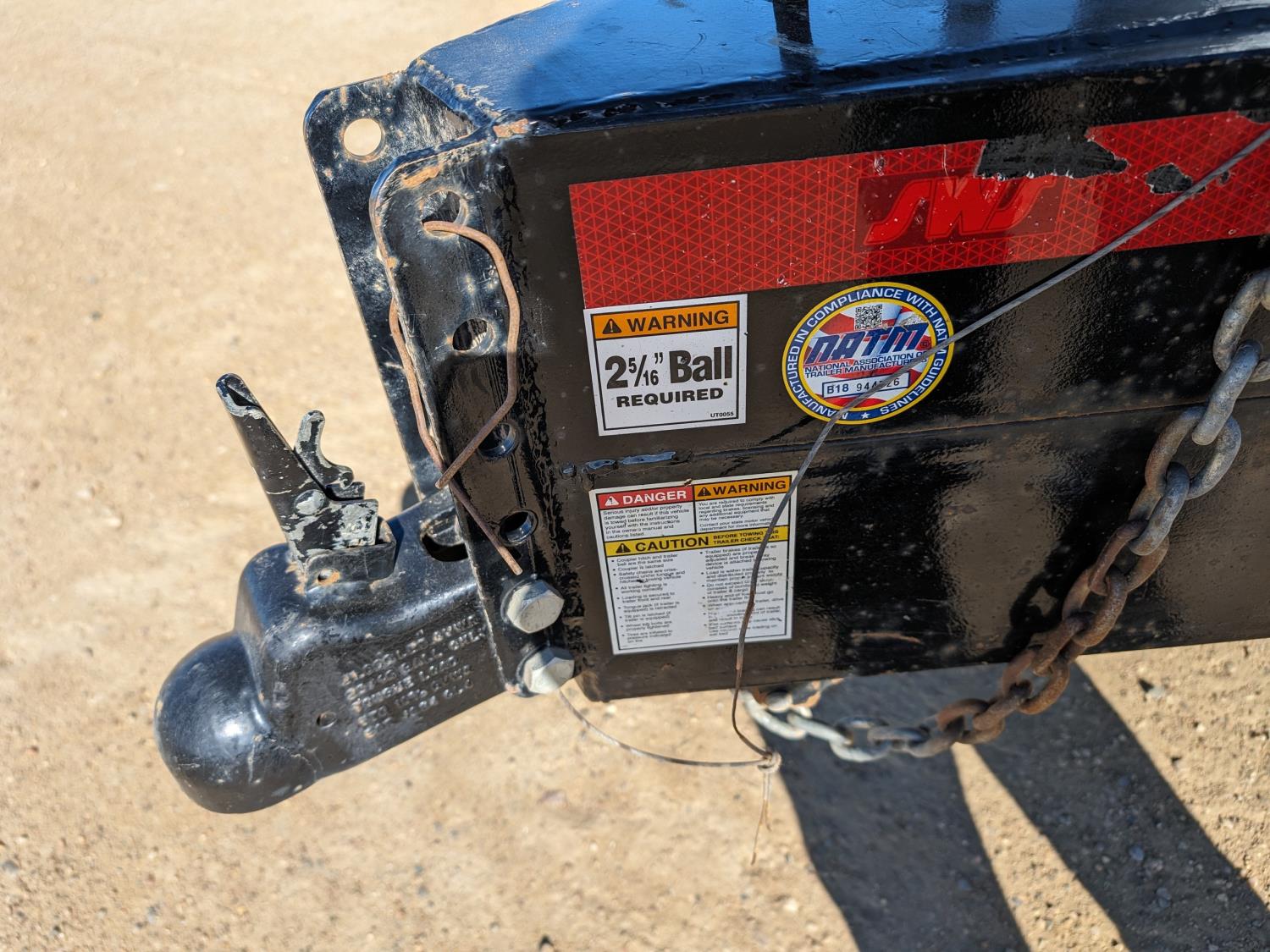 82 inch wide deck, 24 inch beaver tails, wood deck, stand up with spring assist ramps, electric brakes, spring suspension, ball hitch, 235/80R16 tires