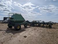 354 John Deere 610 35 Ft Air Seeder with John Deere 777 Tow Behind Air Cart