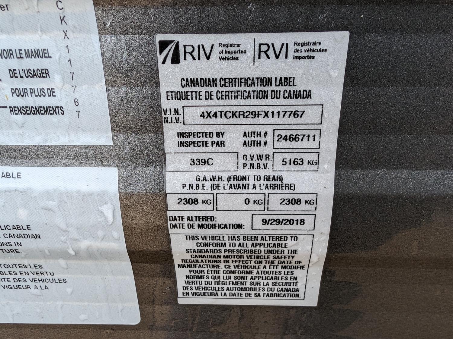 - 4X4TCKR29FX117767