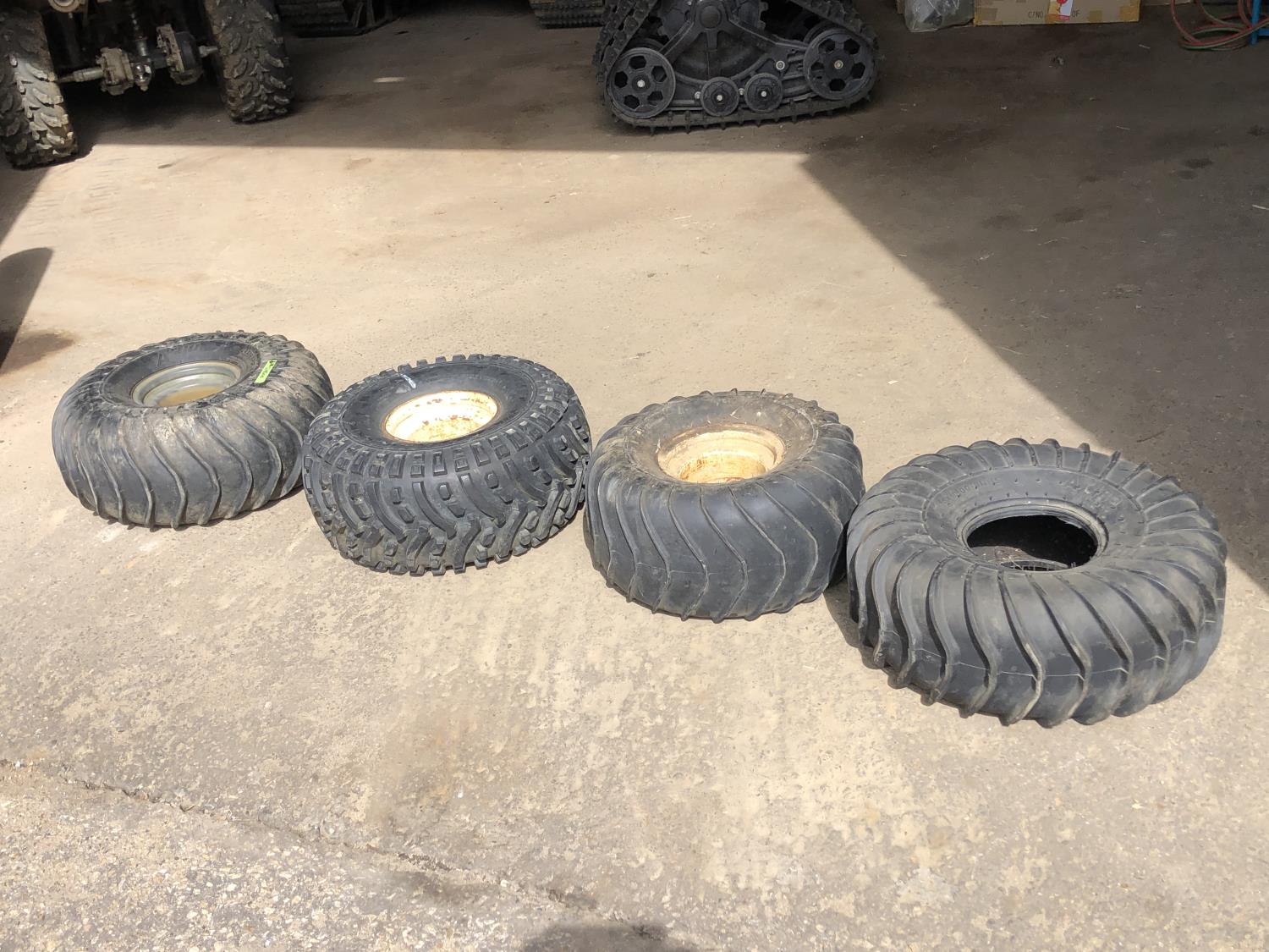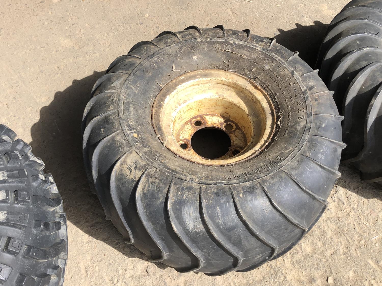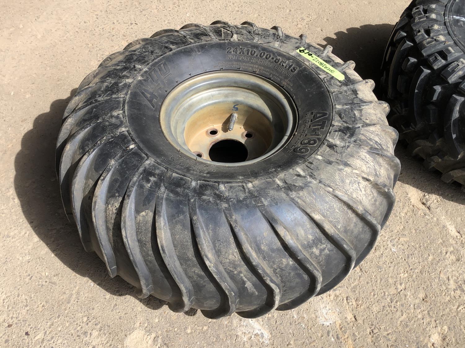 (1) 24X10-8 with rim, (1) 22X11-8 with rim, (1) 20X11-8 with rim, (1) 24X10-8 tire only
