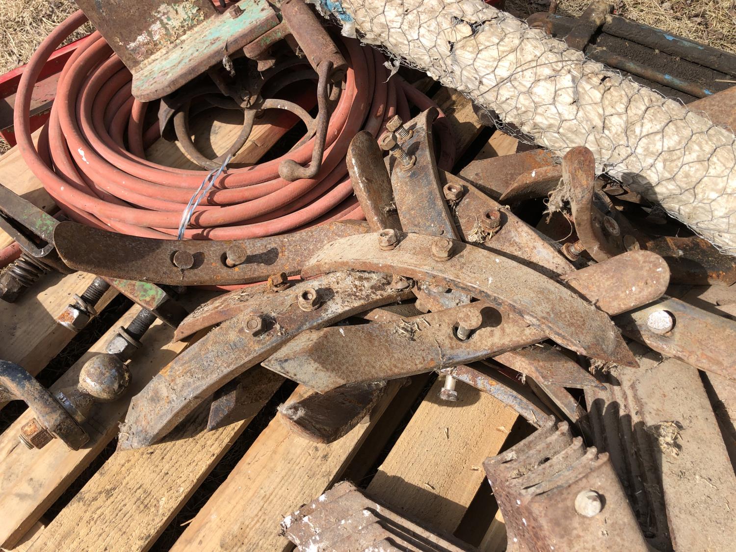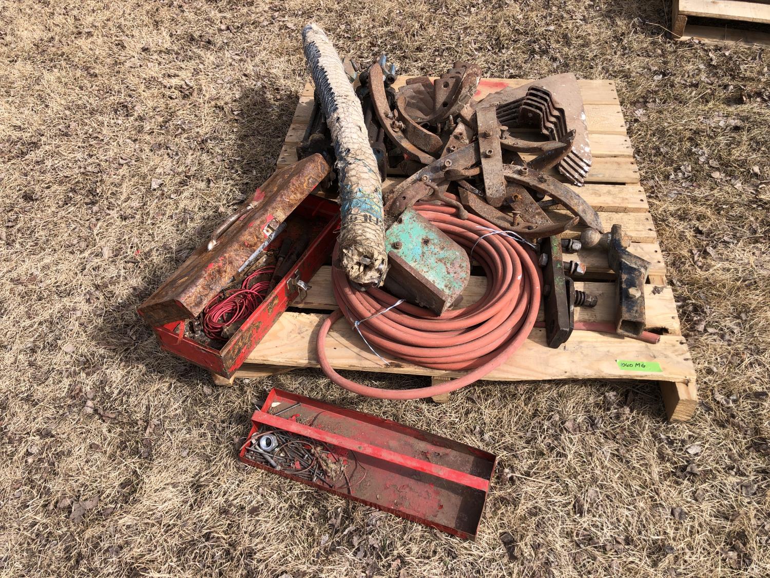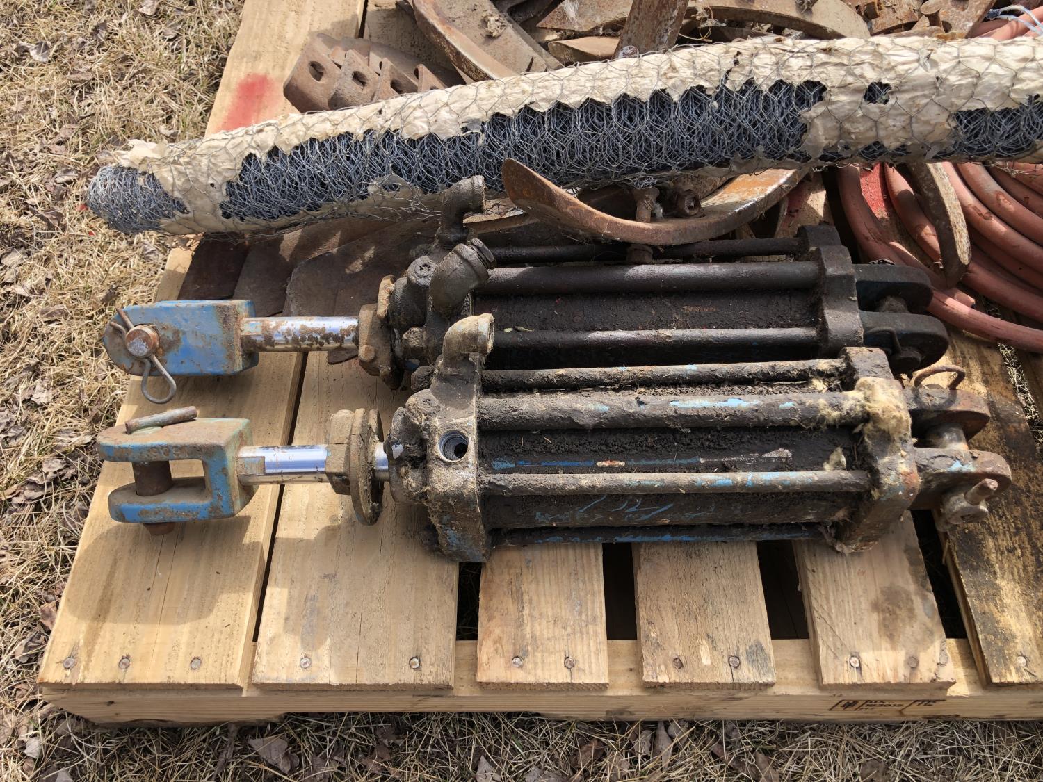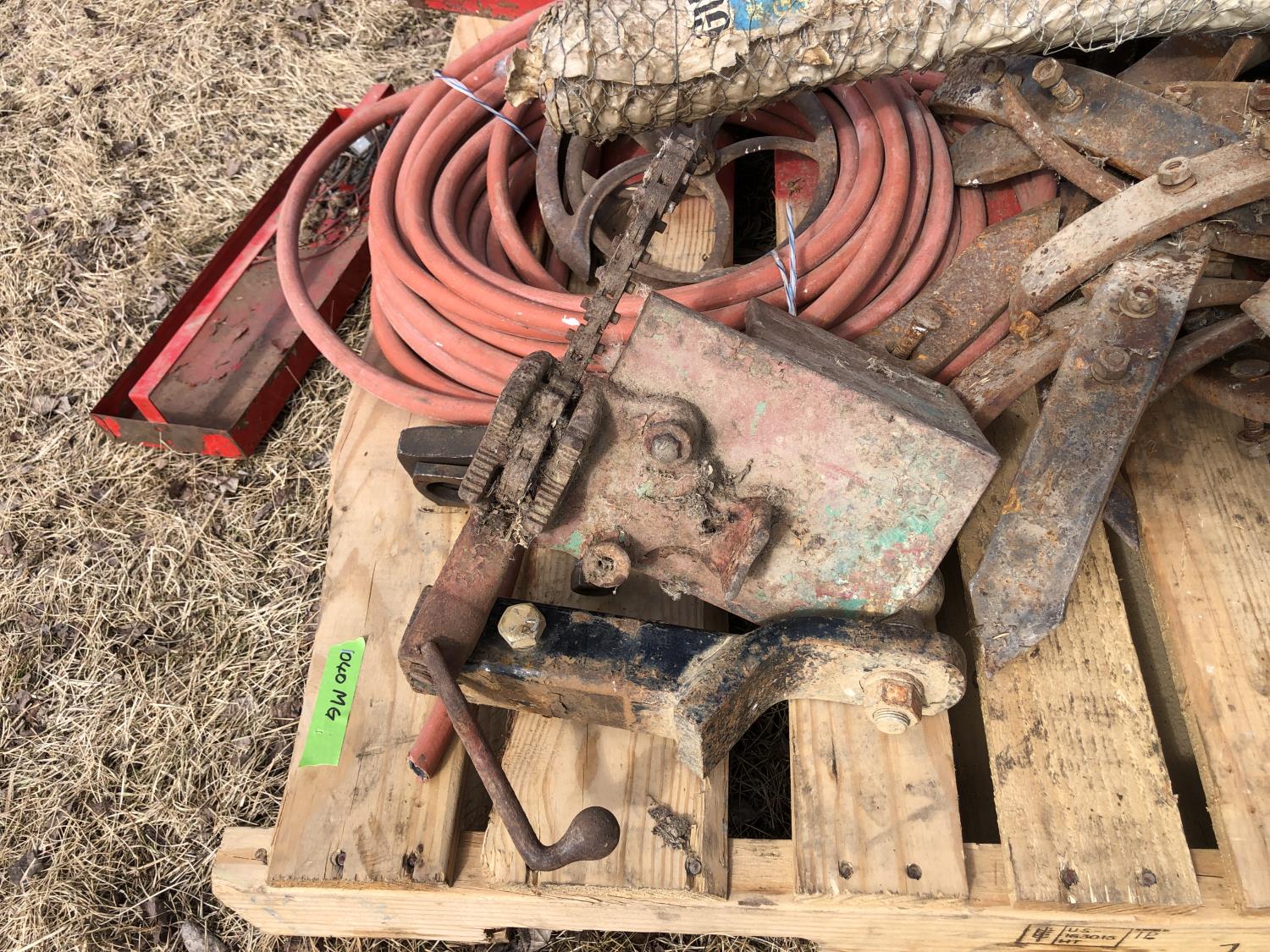 (2) Hydraulic cylinders, cultivator sweeps and spikes, tool box, rubber hose, (2) hitches