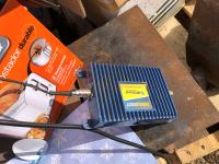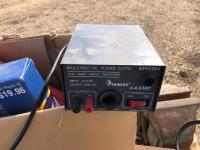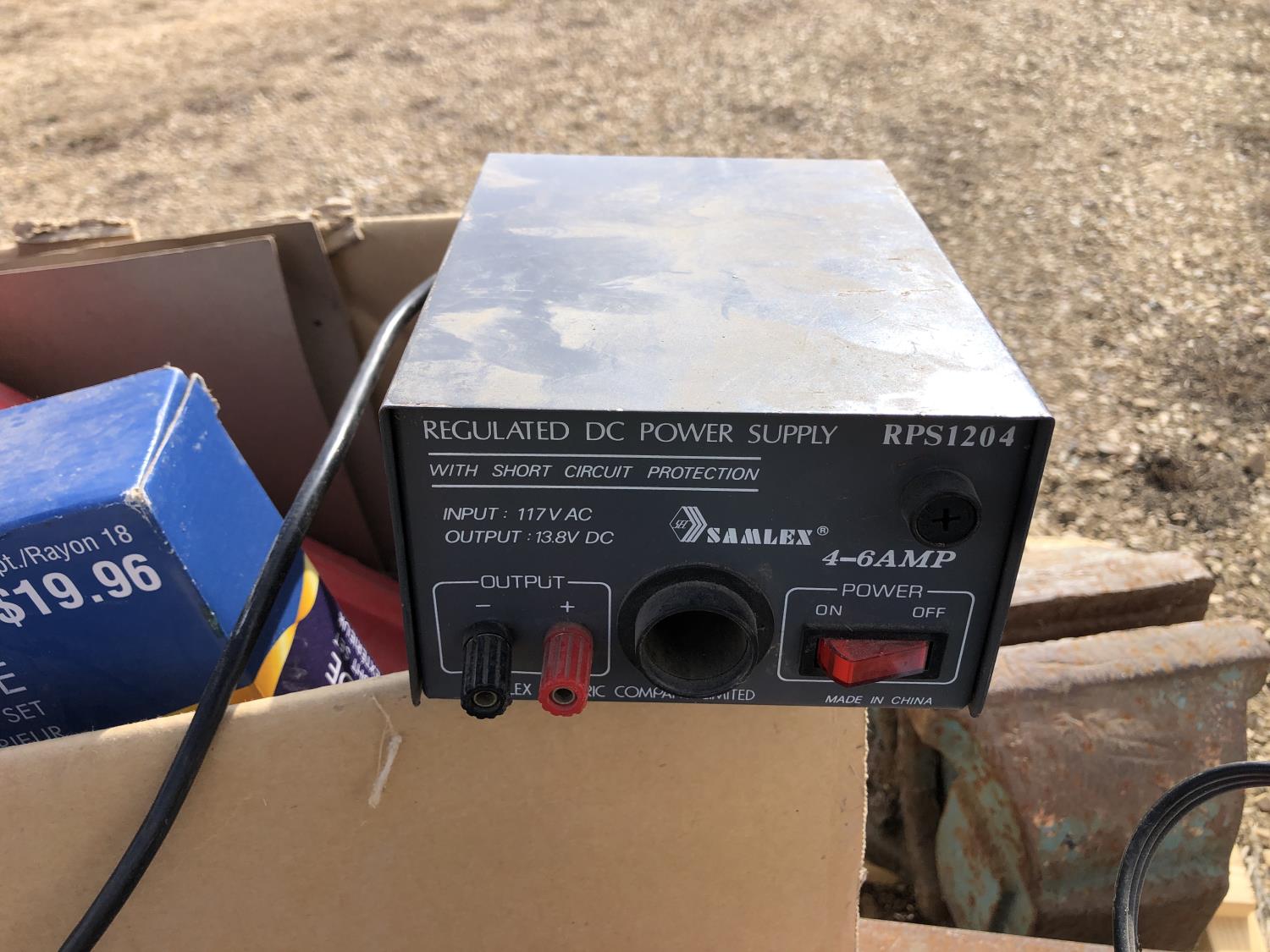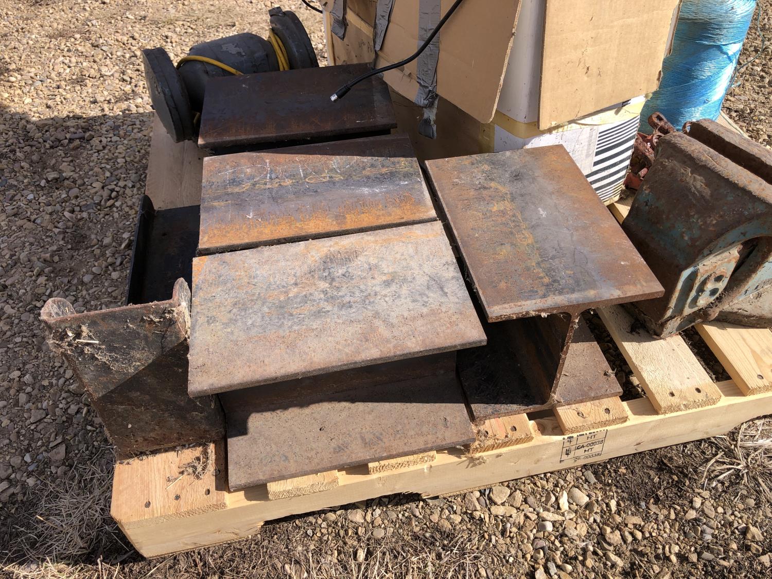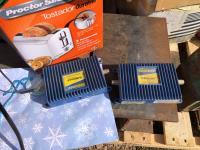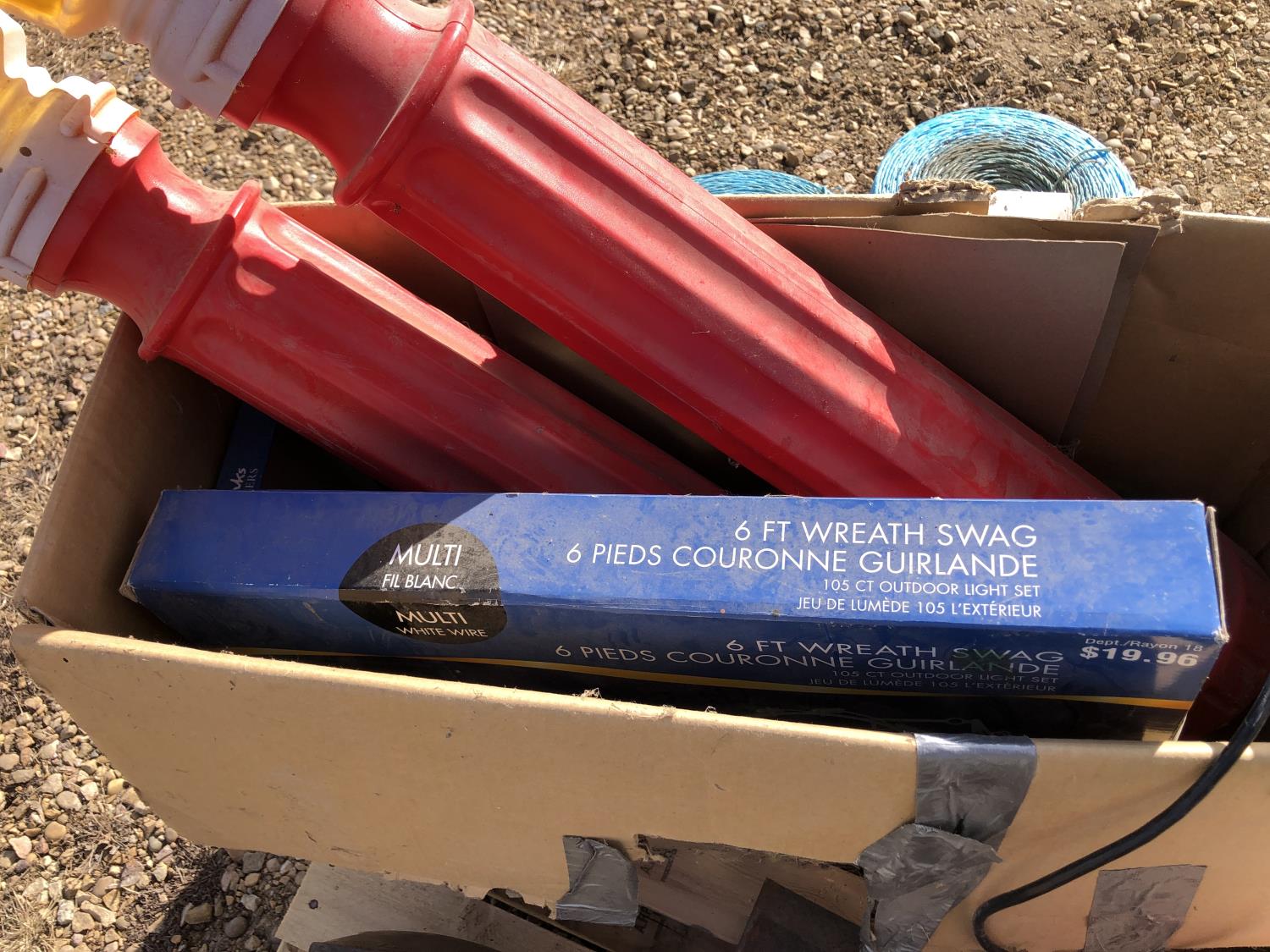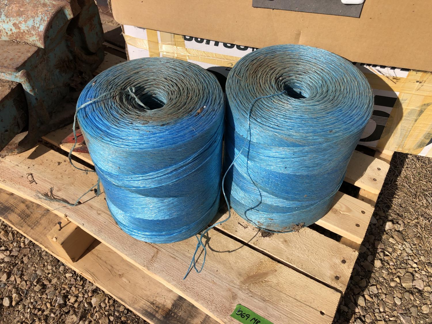 (2) Balls baler twine, 8 inch bench vise, AC-DC power convertor, (2) Wilson phone signal boosters, (4) 12 inch X 12 inch X 8 inch high I beam, Wolf bench grinder, Christmas lights