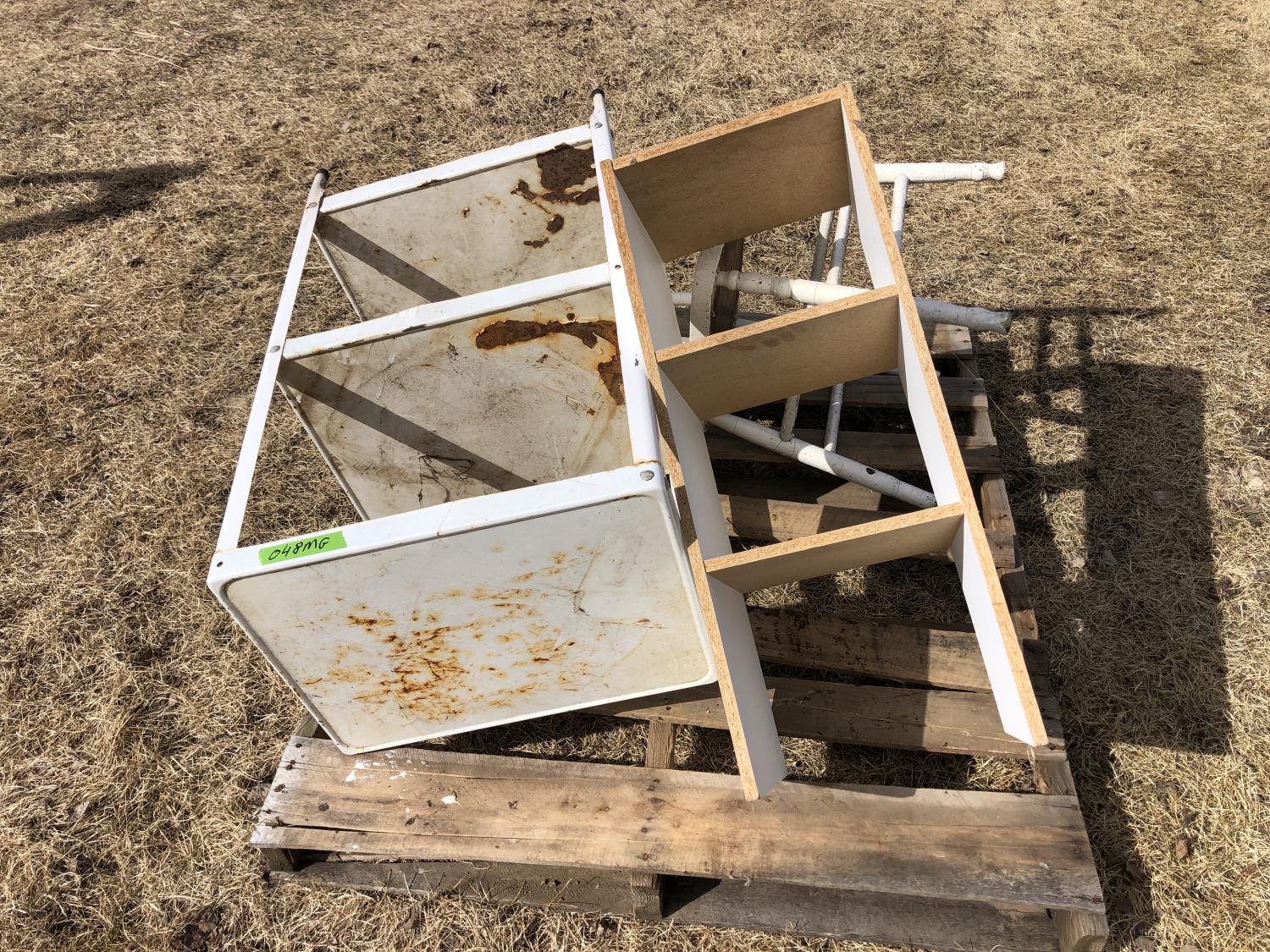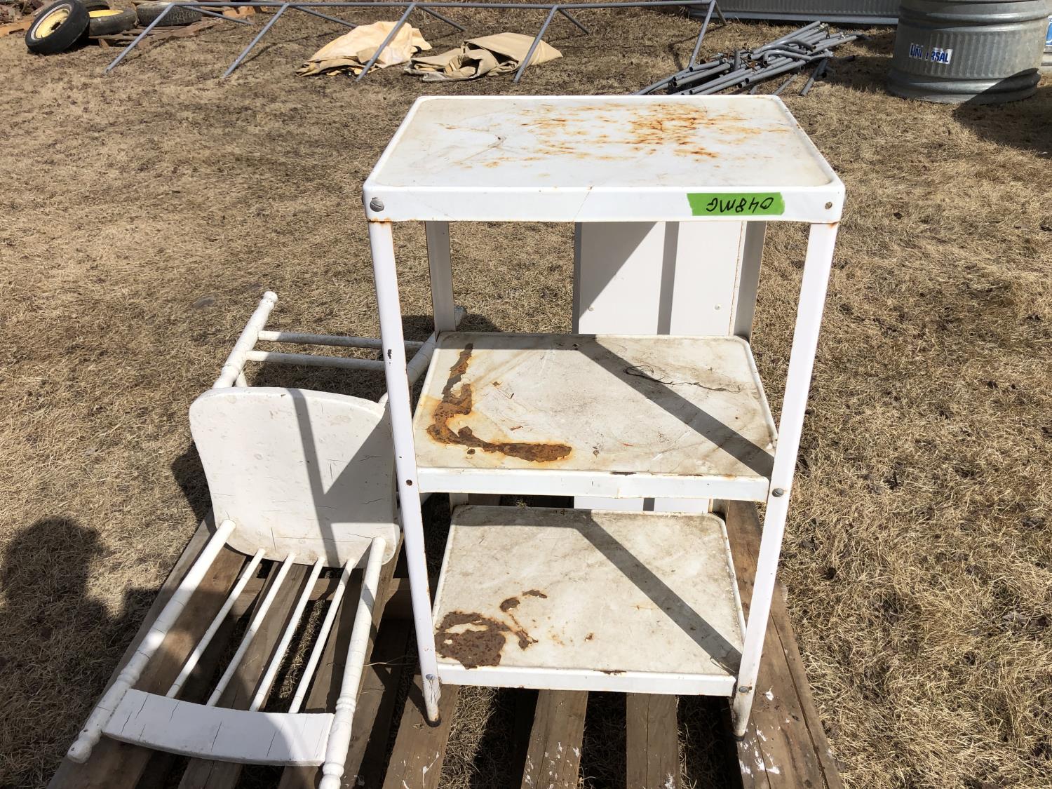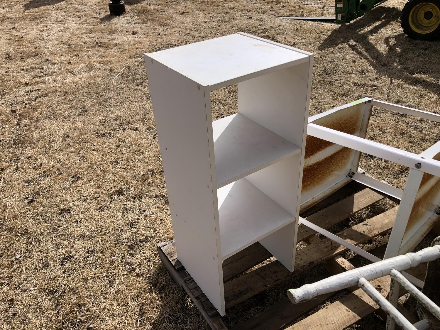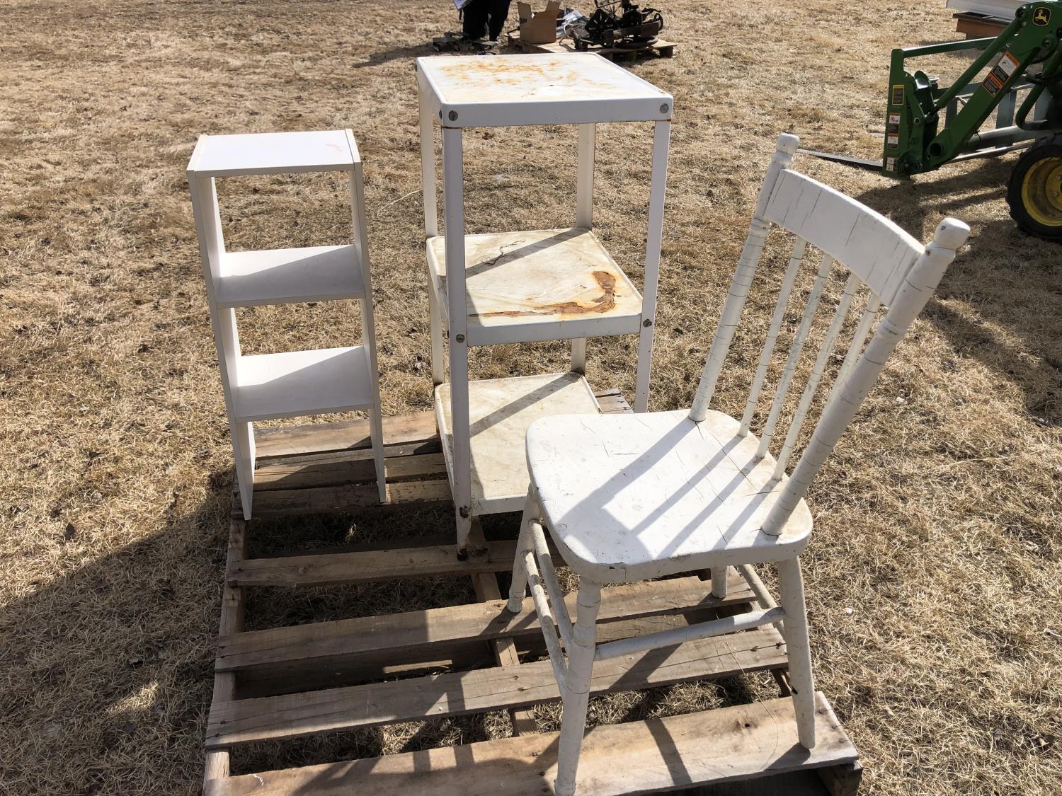 71 Wood Chair, Metal Shelf Unit, Wood Shelf Unit (Inoperable)