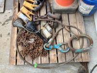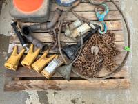 5958 (4) Cat Tiger Teeth, 12 Ft 3/4 Inch Sling, (7) Cones, Grease Gun & Chains