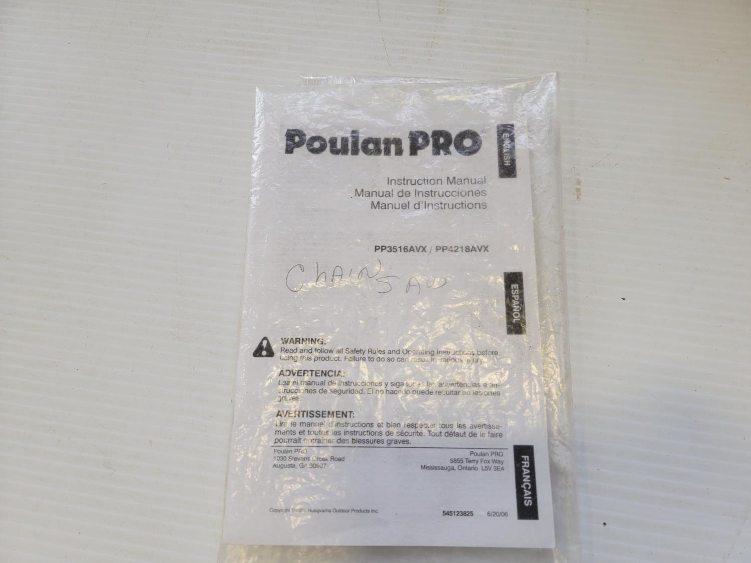 5588 Poulan Pro 42 cc Gas Chain Saw (Inoperable)