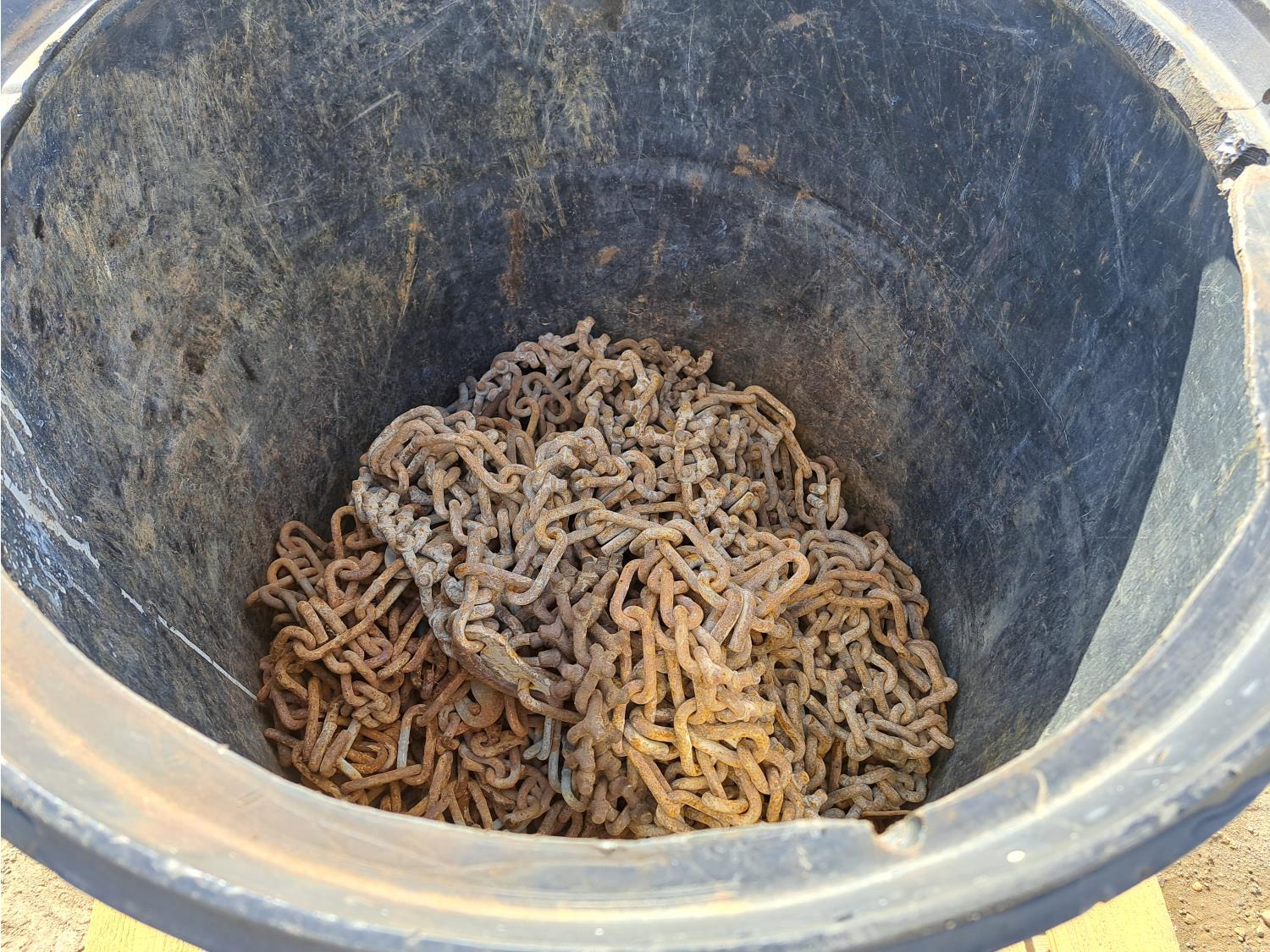 5974 Barrell of Assorted Truck Tire Chains and Chrome Bumper