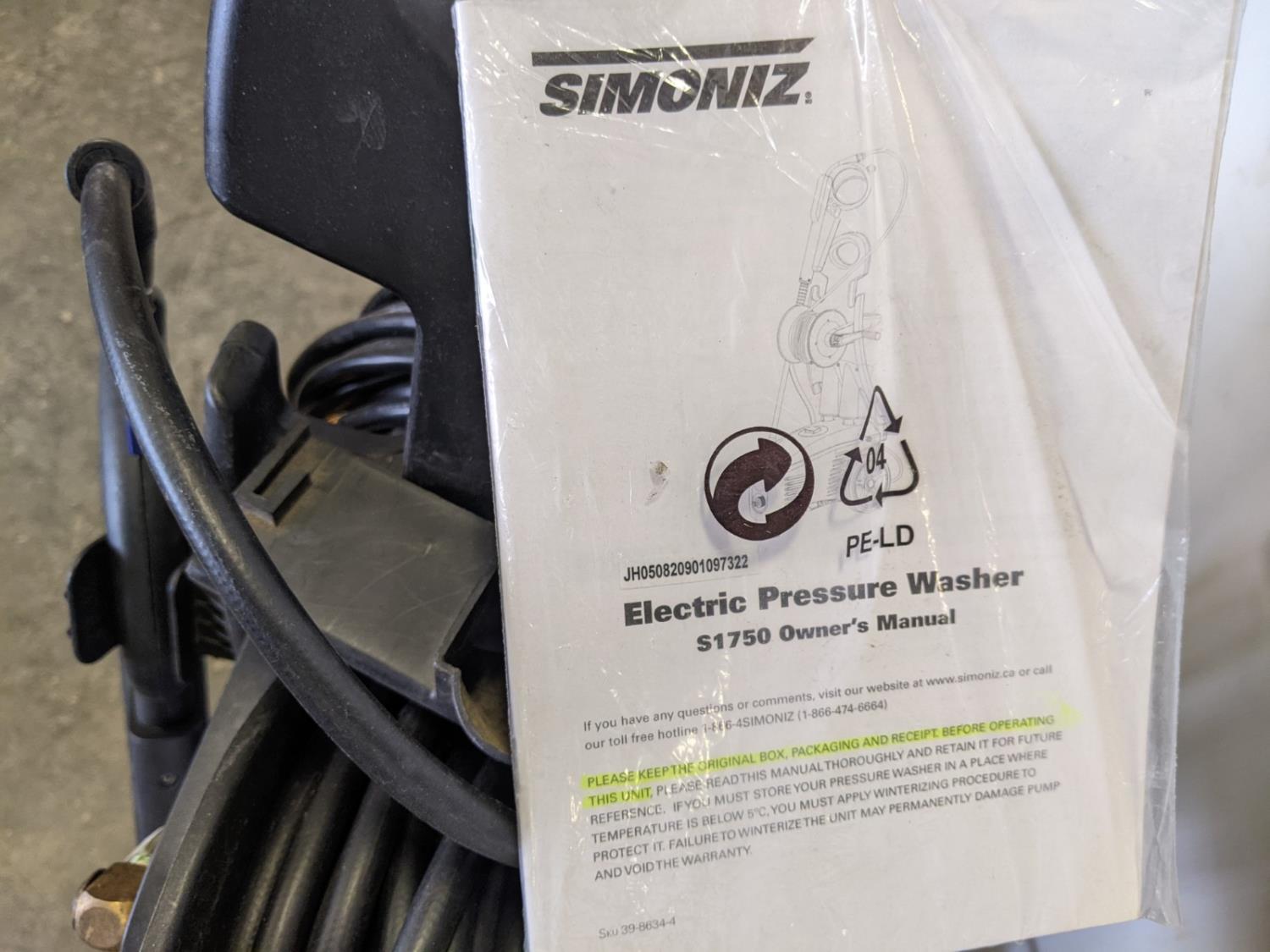 5660 Simoniz S1750 Electric Pressure Washer