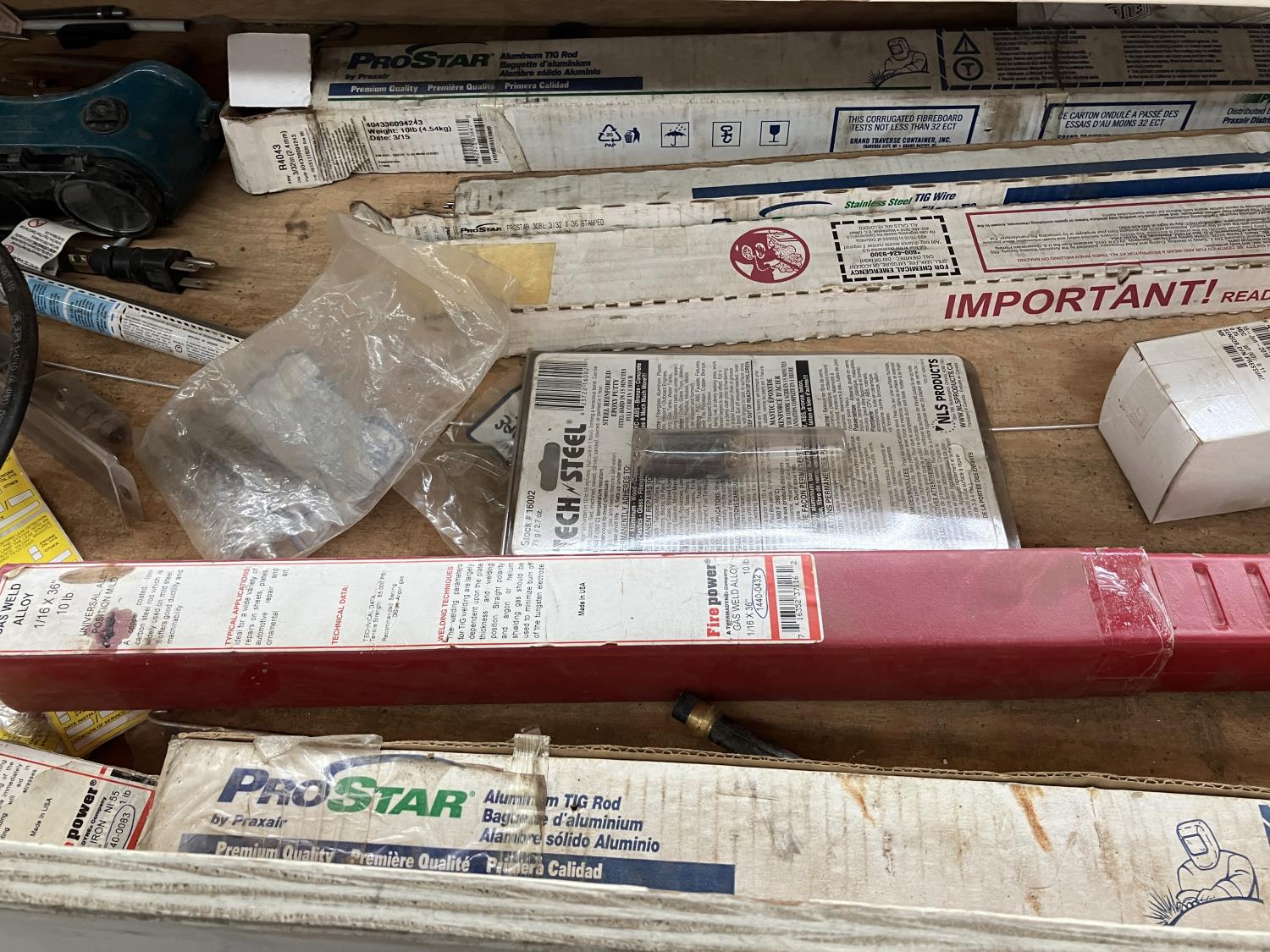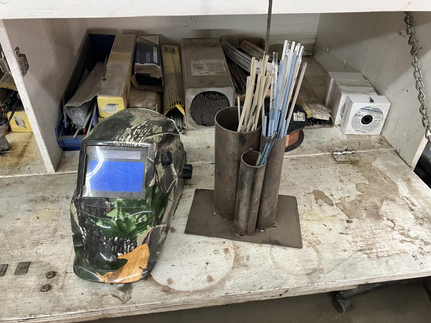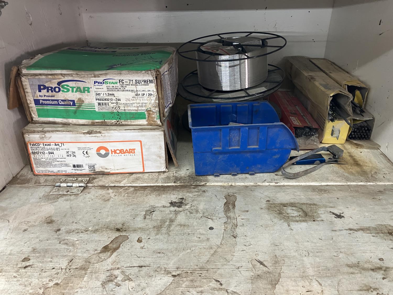 5802 Large Qty of Welding Items & Supplies in Wooden Cabinet