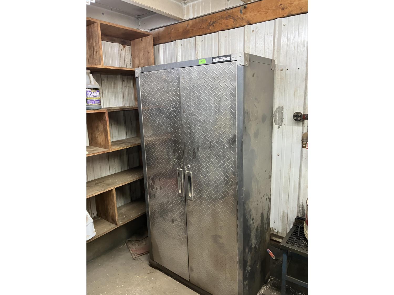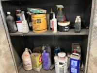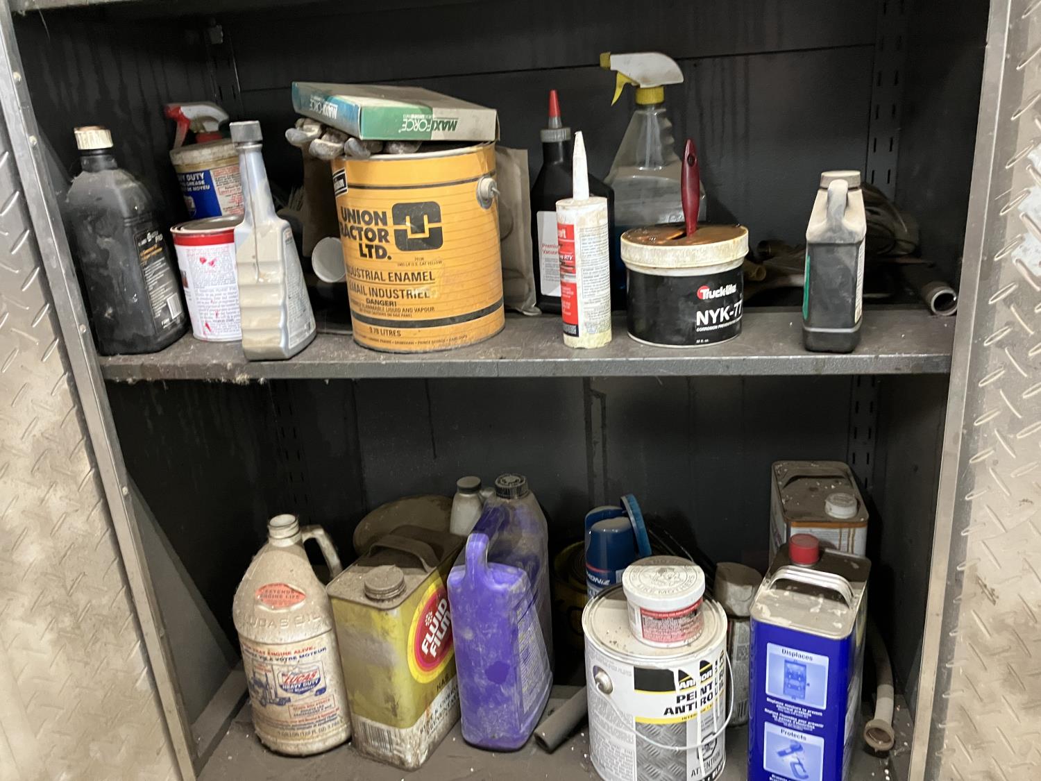 qty of various shop fluids, cabinet measures 36 inch W X 18 inch D X 67.5 inch H