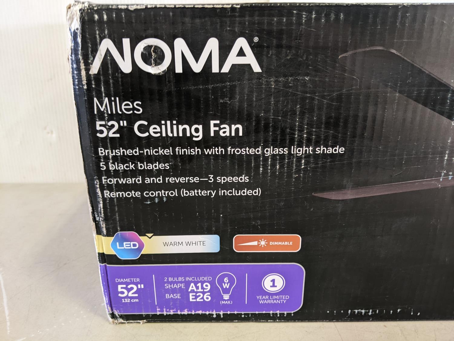 5227 Noma Miles 52 Inch Ceiling Fan and Canvas 1 Inch Curtain Rod (Unused)