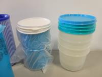 Some containers do not have lids or may be missing pieces. Some are used, most are new. in person inspection is encouraged.
