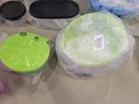 Some containers do not have lids or may be missing pieces. Some are used, most are new. in person inspection is encouraged.