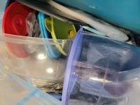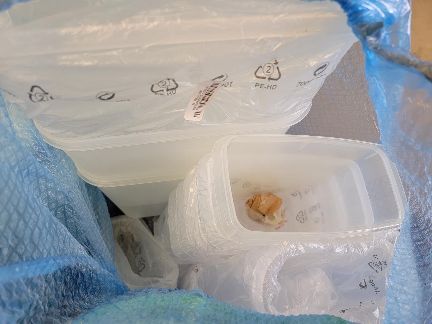 Some containers do not have lids or may be missing pieces. Some are used, most are new. in person inspection is encouraged.