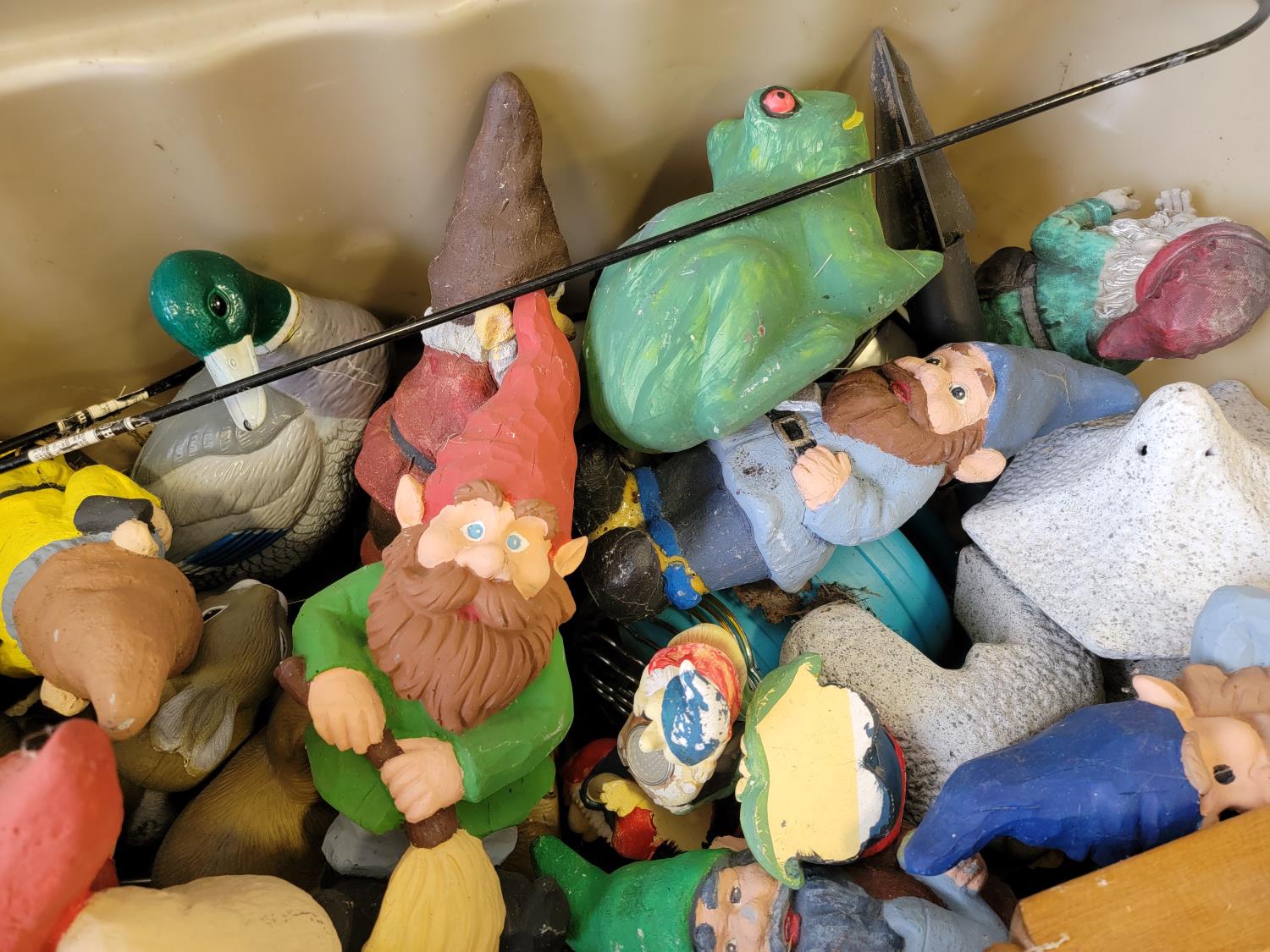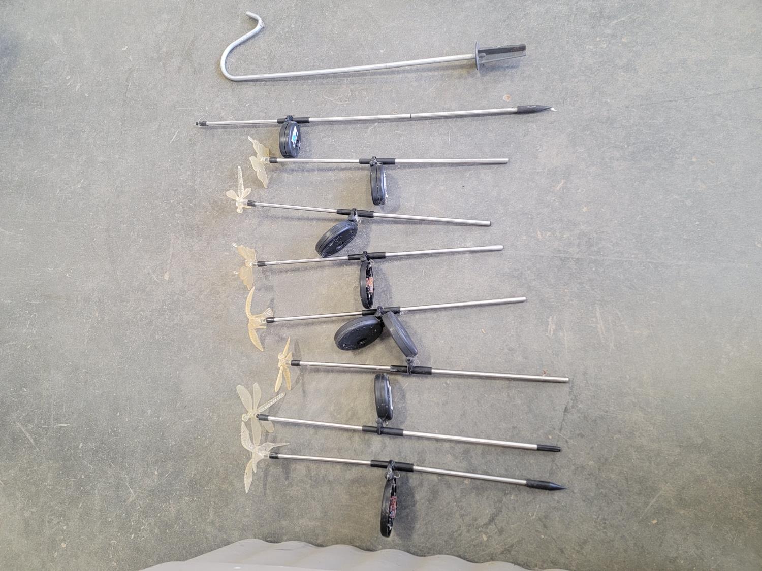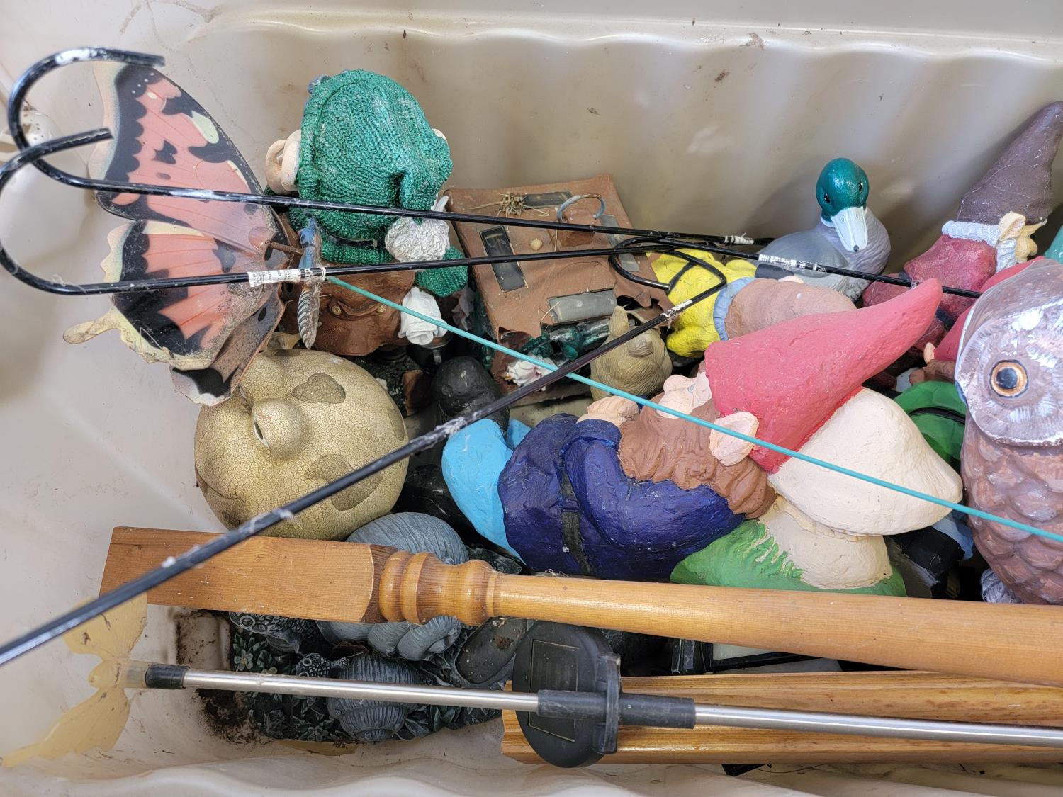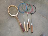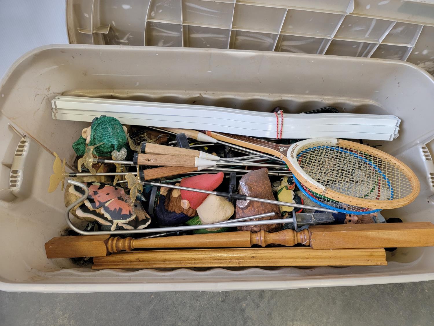 (5) badminton rackets, solar decorations, garden gnomes,