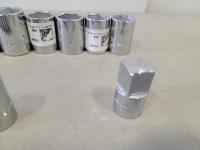 Assorted 1/2 inch drive sockets, 1/2 inch drive ratchet wrench, 1/2 inch - 3/4 inch adaptor
