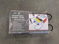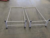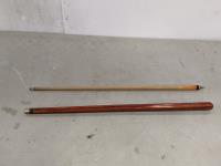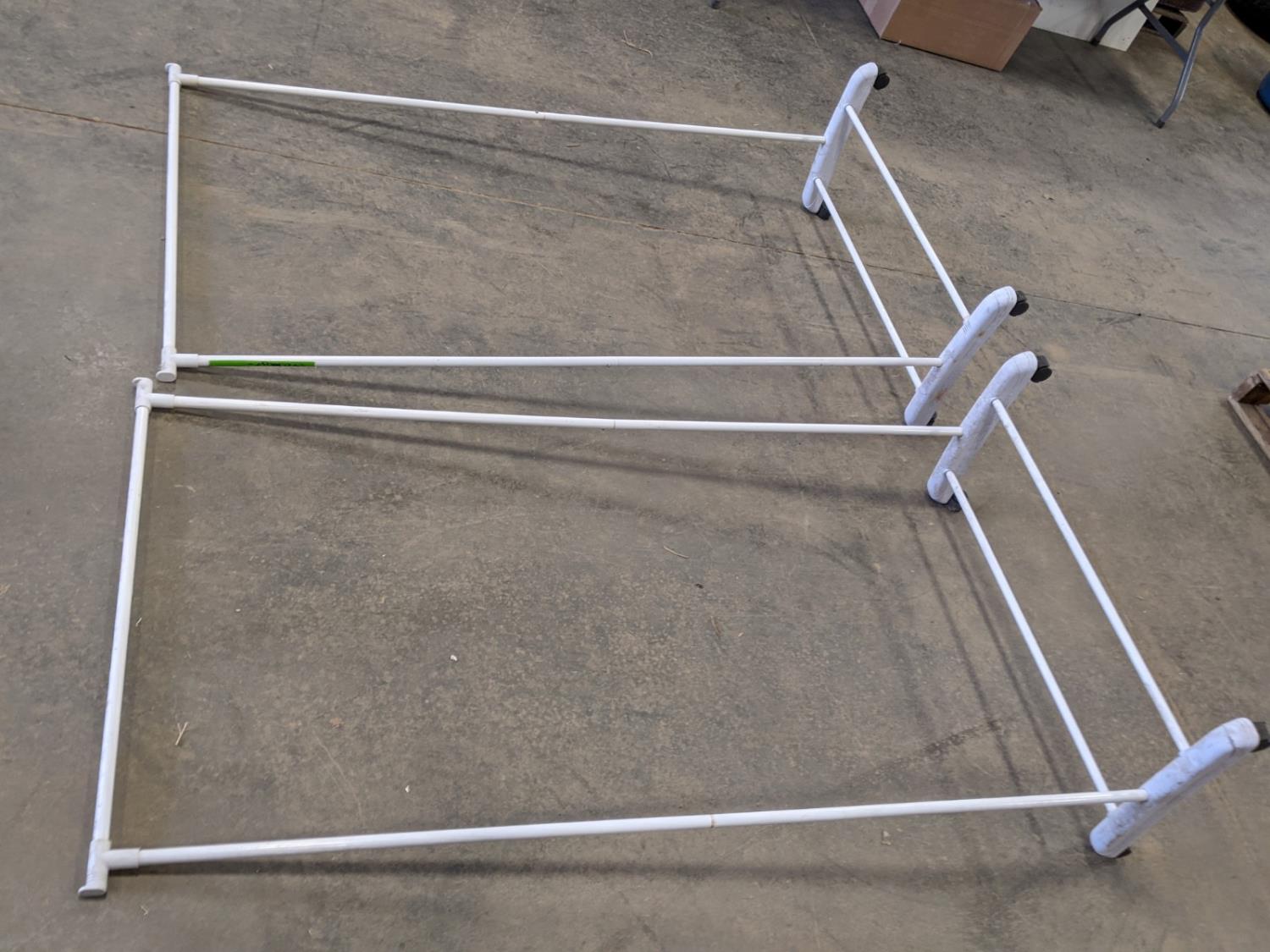 (2) clothes hanging racks, battery tester, pool cue