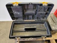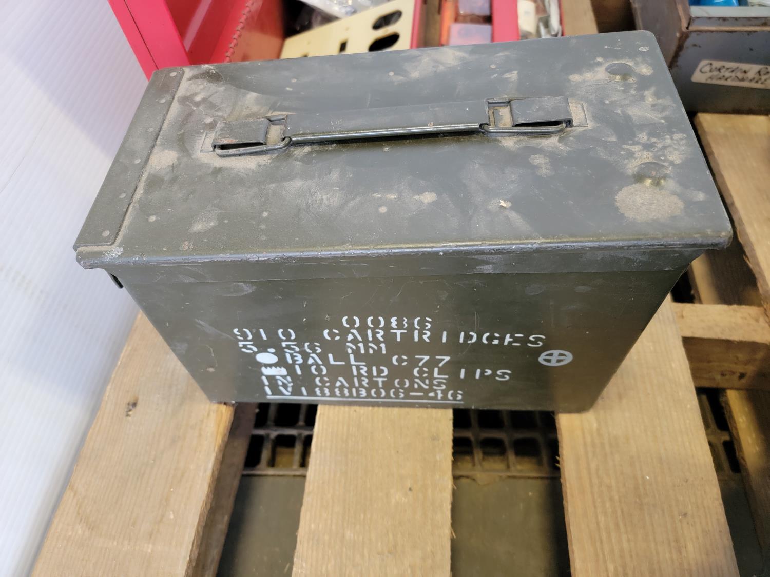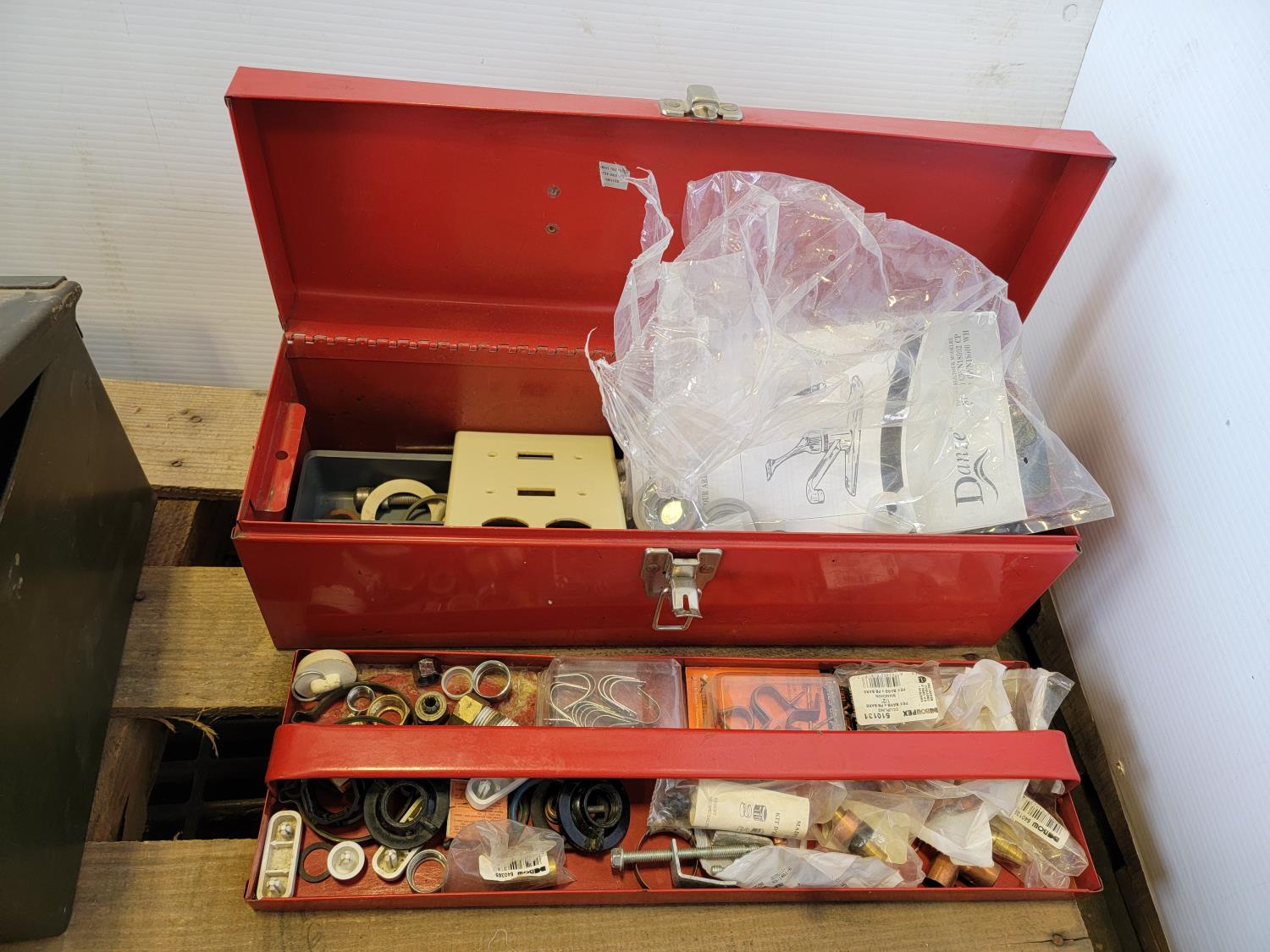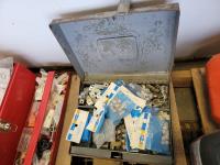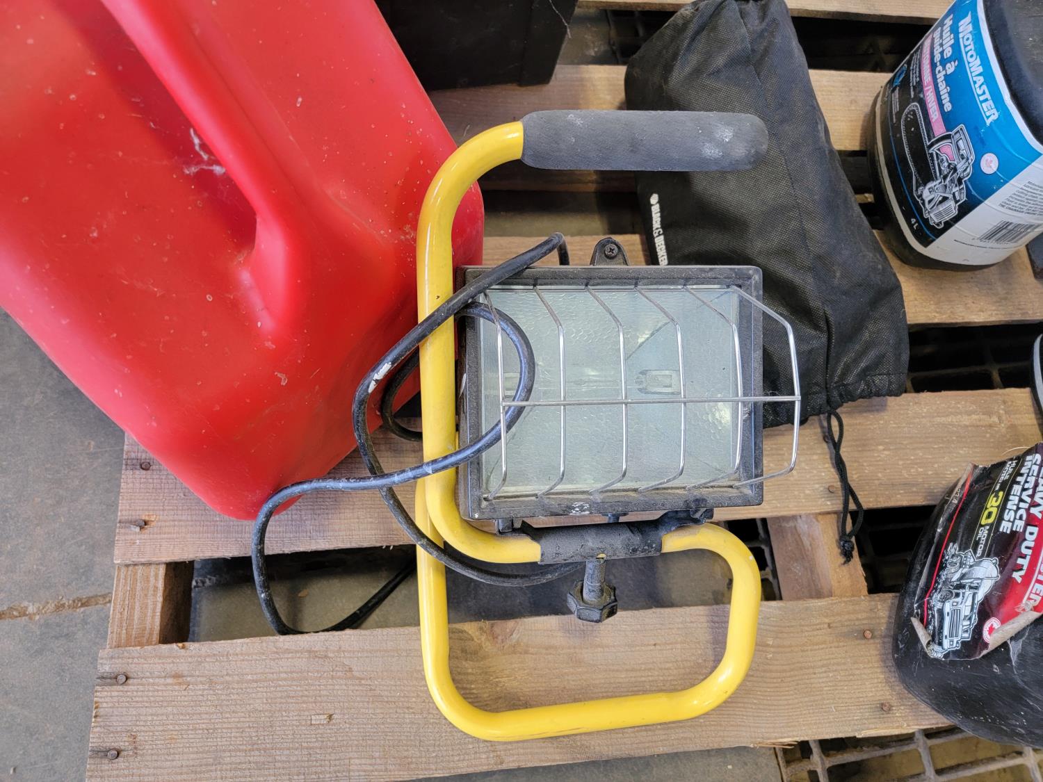 Toolbox with hardware, toolbox, (2) jerry cans, work light, metal ammunition box