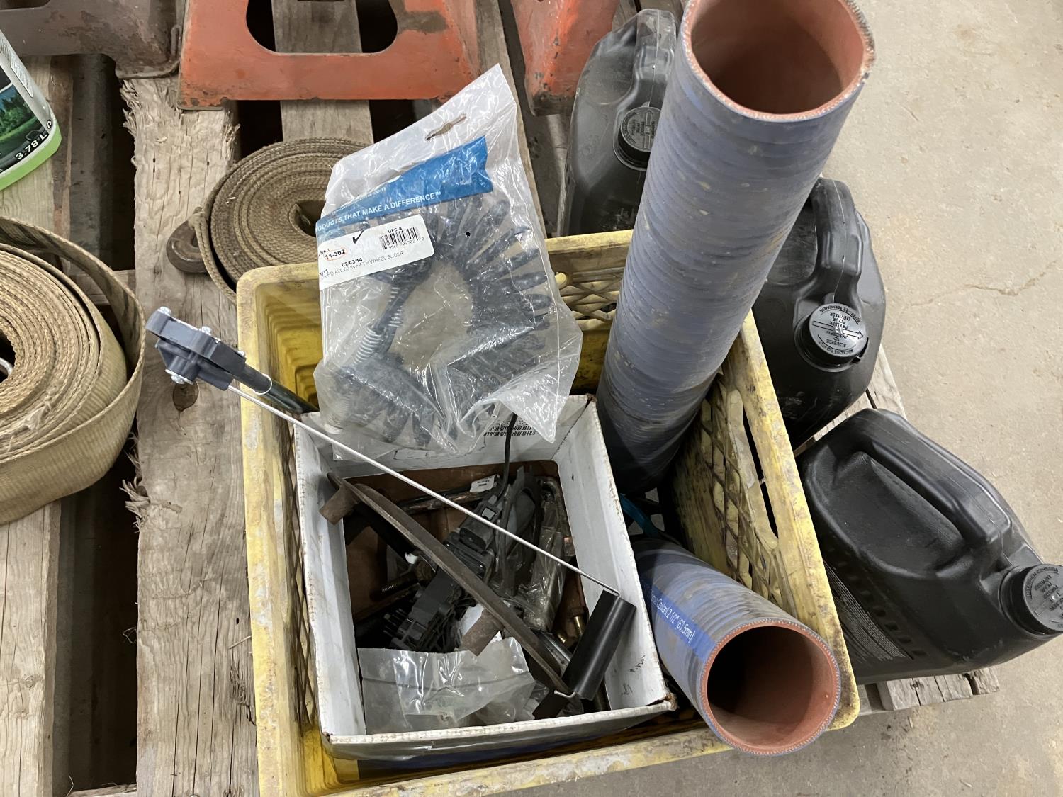 (2) 6 ton jack stands, (2) 10 ton jack stands, (2) jugs of marvel oil, (2) jugs of Lucas oil stabilizer, (4) Jugs of diesel antifreeze, 3 ft 2-*3/4 inch rad hose, (2) 4 ft straps