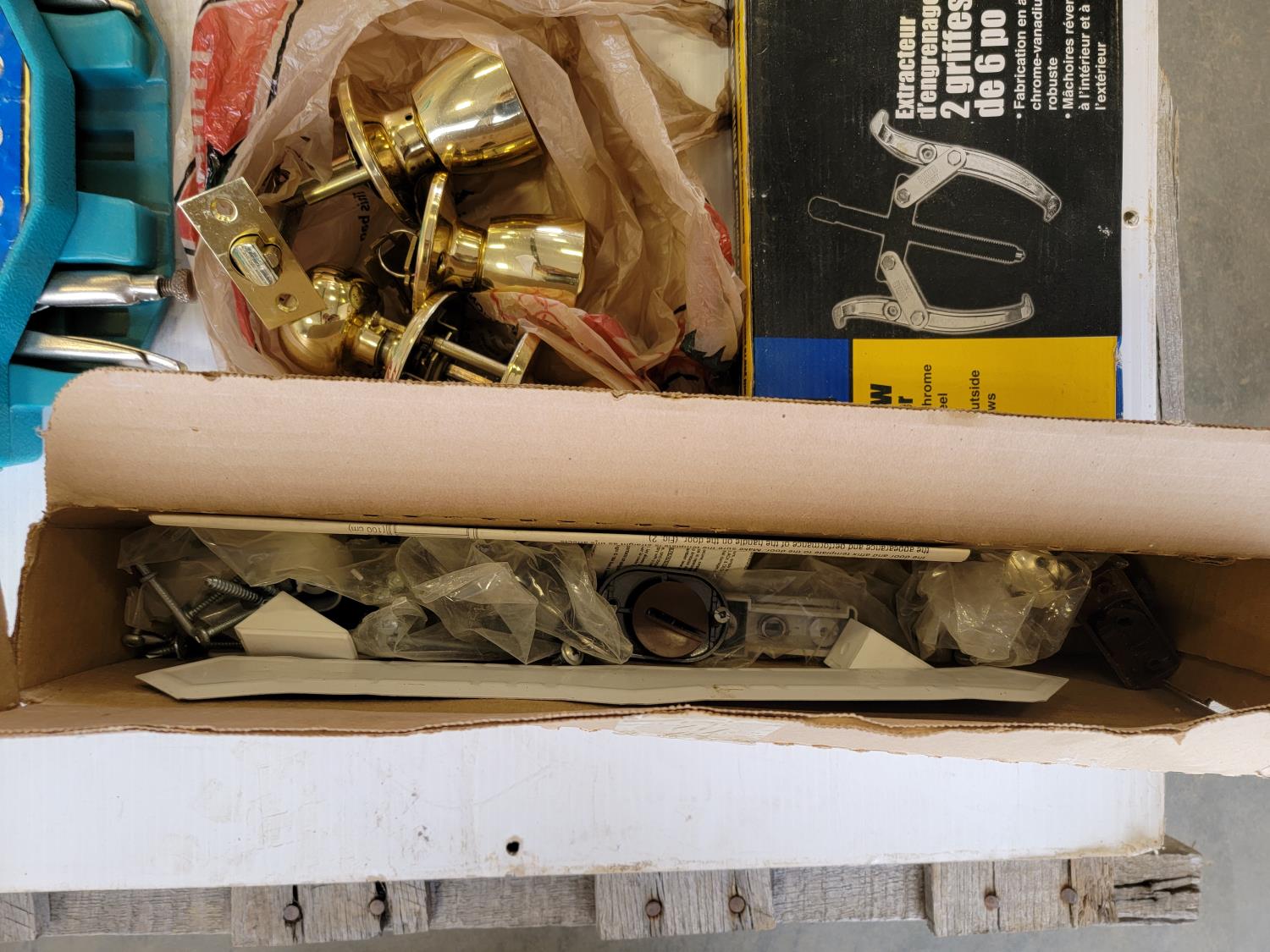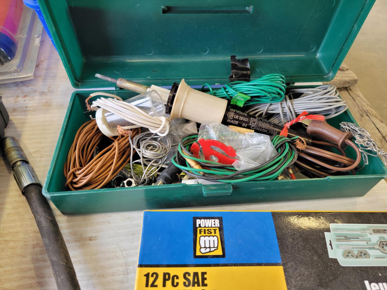 6 inch 2 jaw gear puller, Portasharp drill bit sharpener, drill bits, Powerfist tap & die set, multi-use transfer pump, Mastercraft propane torch