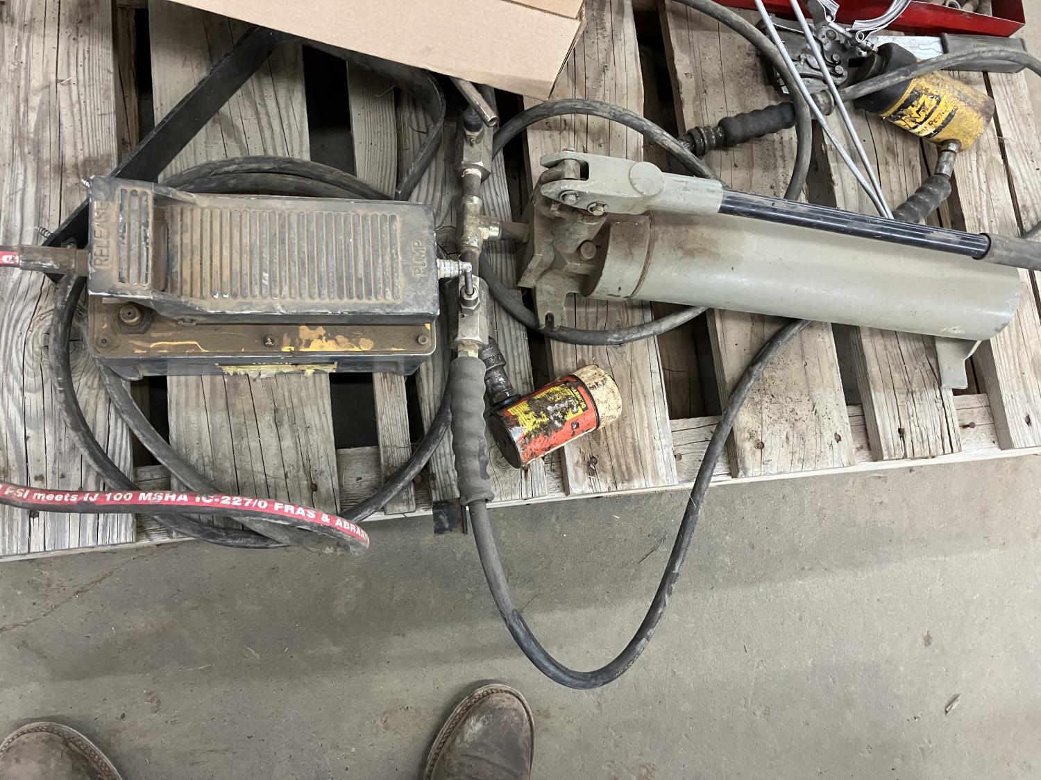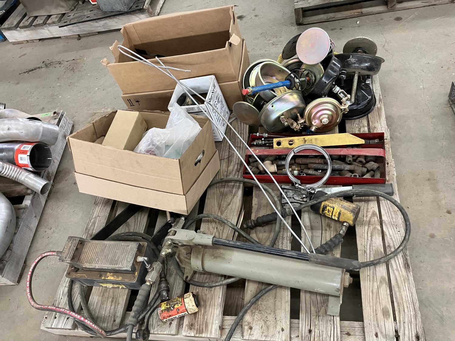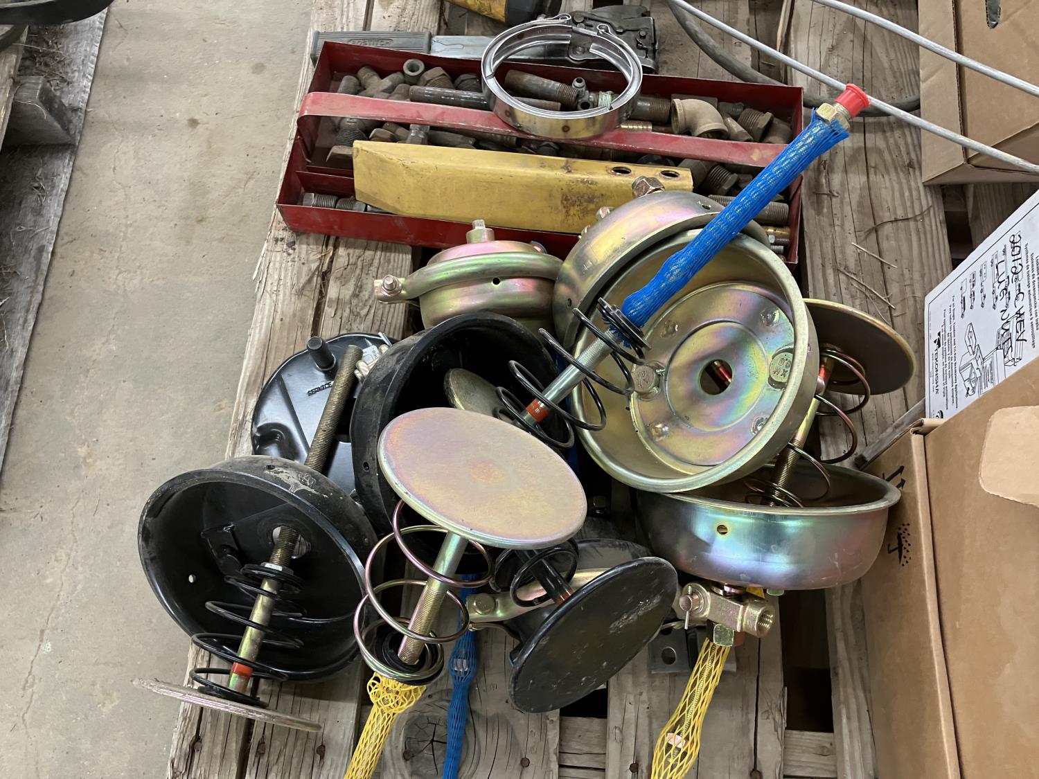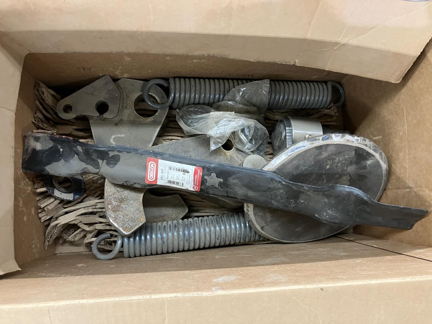 Air operated Port-a-Power, qty of brake parts, steel plugs, miscellaneous springs, 21-3/16 ft lawnmower blade