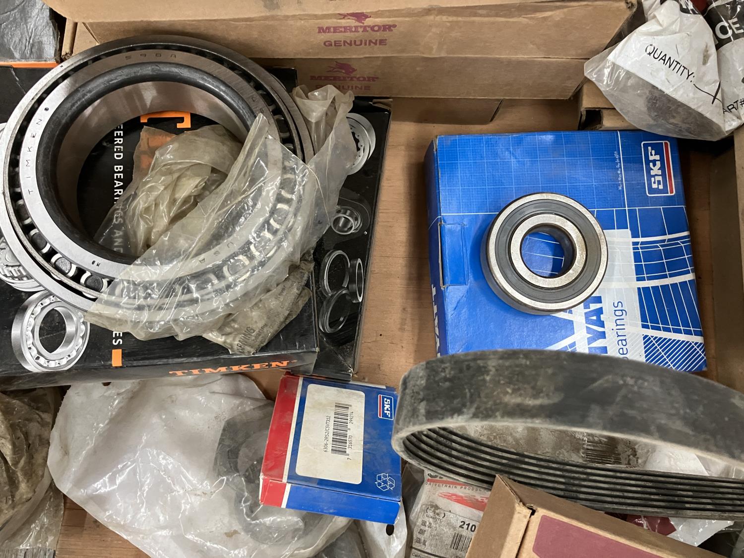 qty of differential seals, qty of trailer axle caps, (2) document holders, (6) wheel bearing sets, (8) pinion nut and seal, (10) aluminum drum protectors