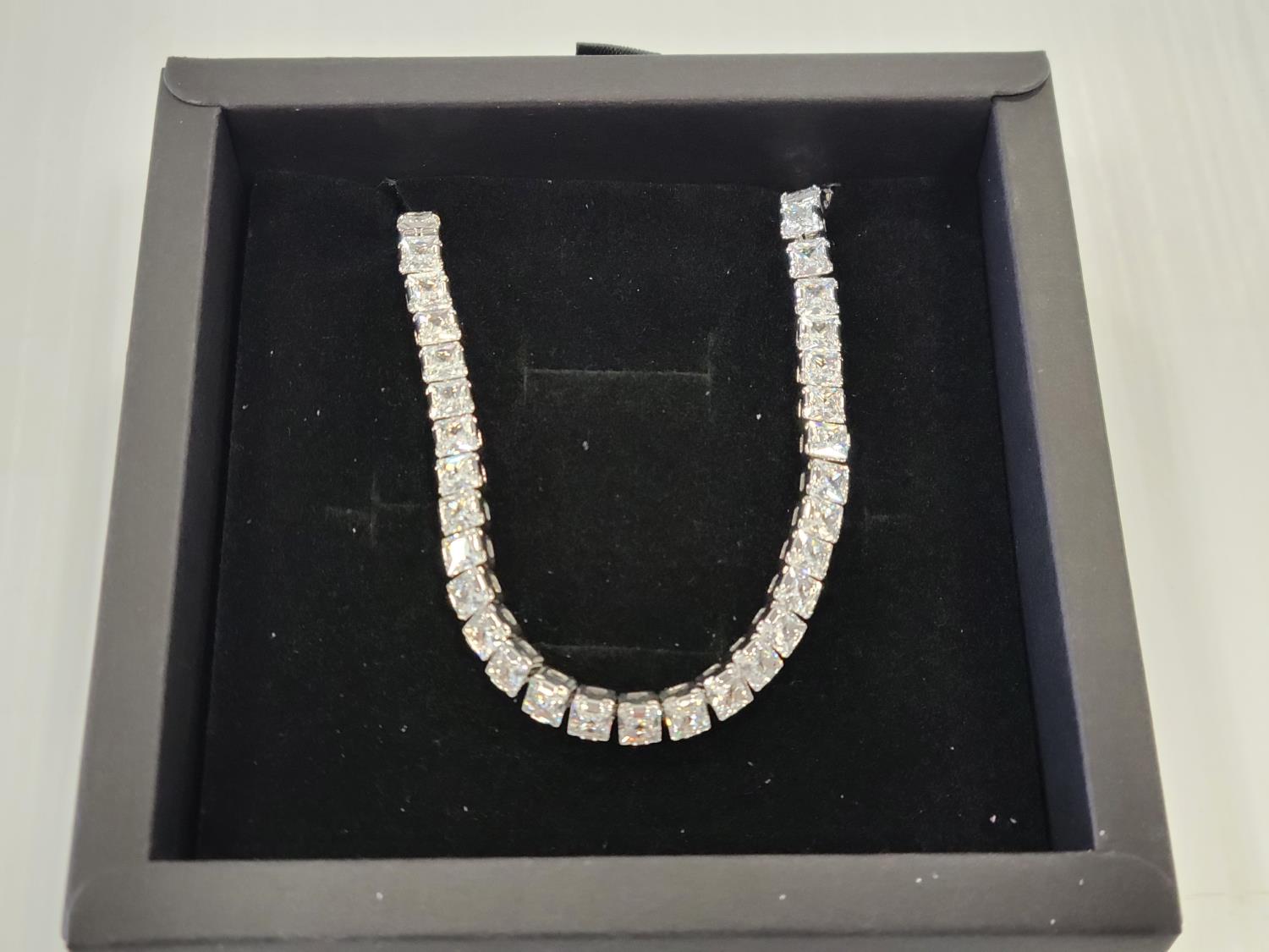 5677 Smartlife Platinum Plated 4.0 mm Princess Cut Tennis Bracelet (Unused)