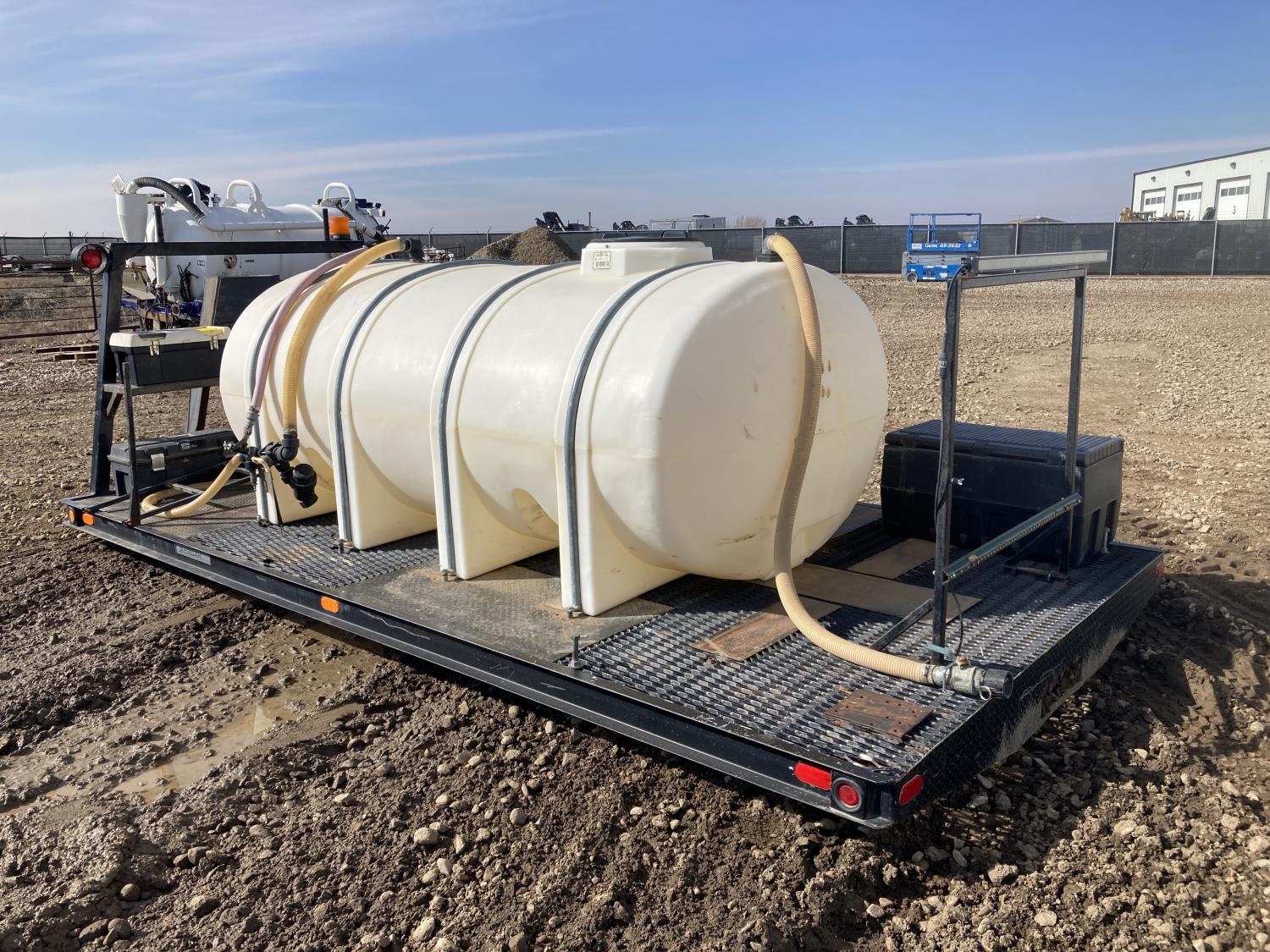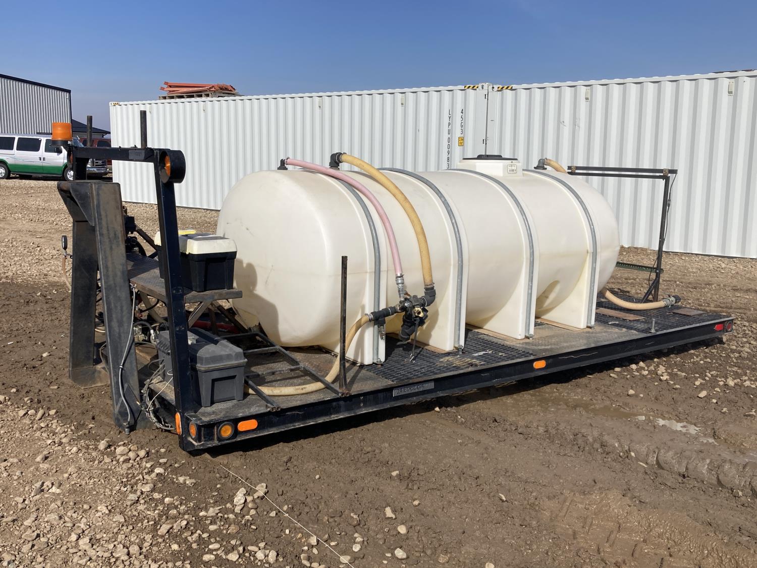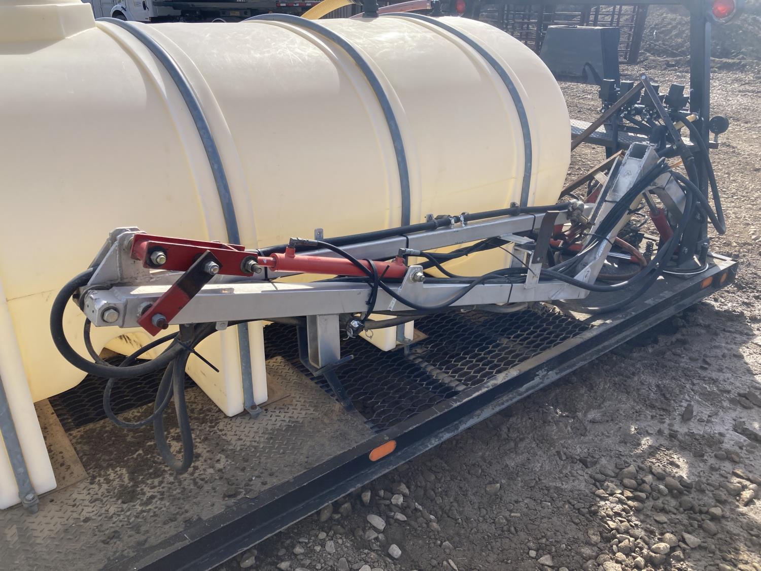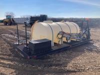 100 inch X 194 inch custom truck deck with 1040 gallon poly tank, 16 ft right side boom, 12 volt electric pump