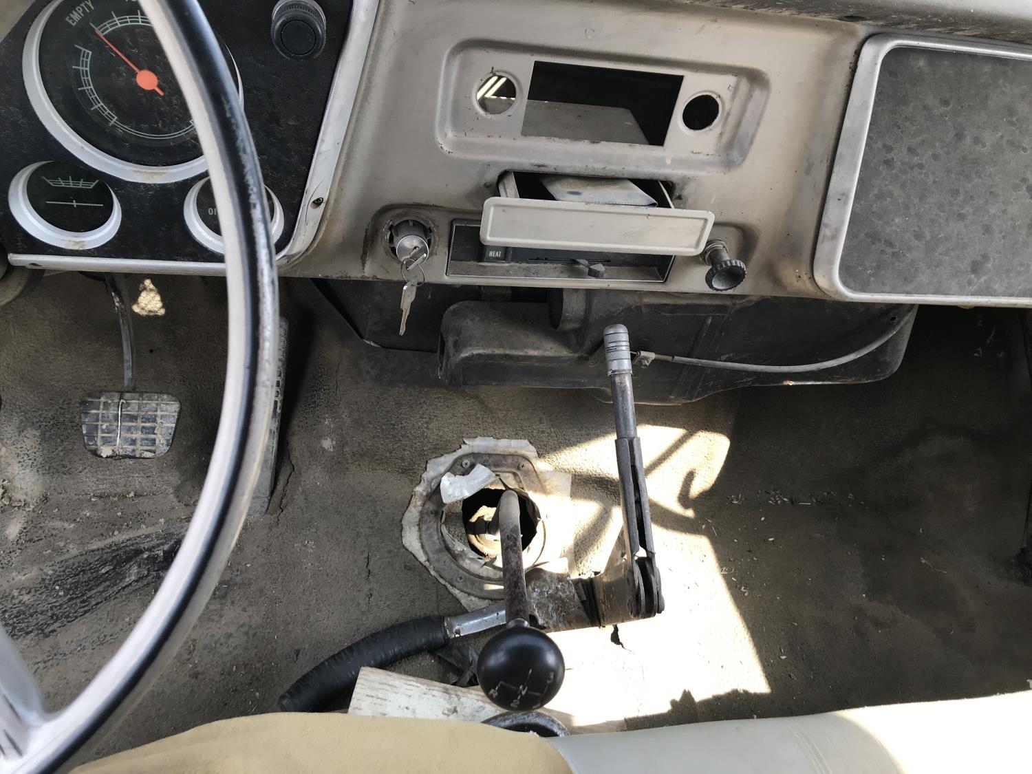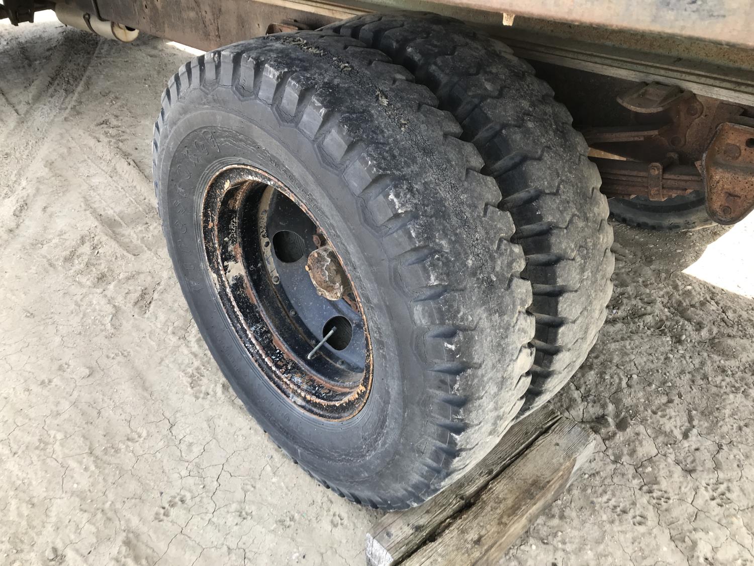 V8 gas engine, 4 speed manual transmission, 14 ft box, spring suspension, 9.00-20 tires