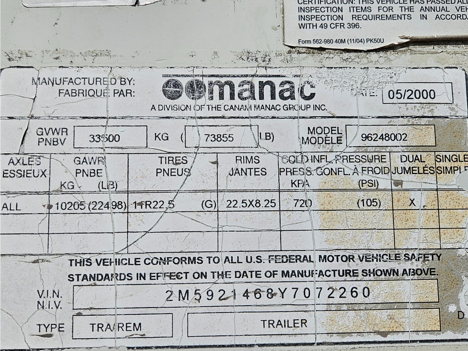 8 ft 6 inch van width, 110 inch height, rear swing doors, scuff liner, 2 speed landing gear, air brakes, spring suspension, 11,200 lb axles, 11R22.5 tires