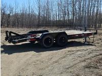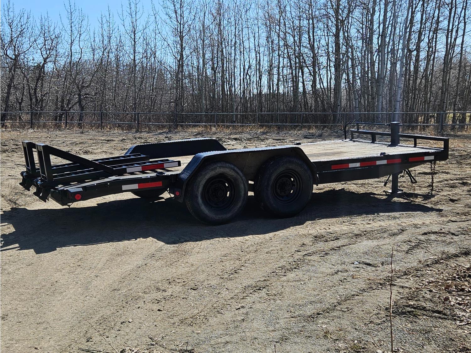 84 inch wide deck, 24 inch beaver tails, wood deck, electric brakes, ball hitch, 5ft Ramps, 7000 lb axles