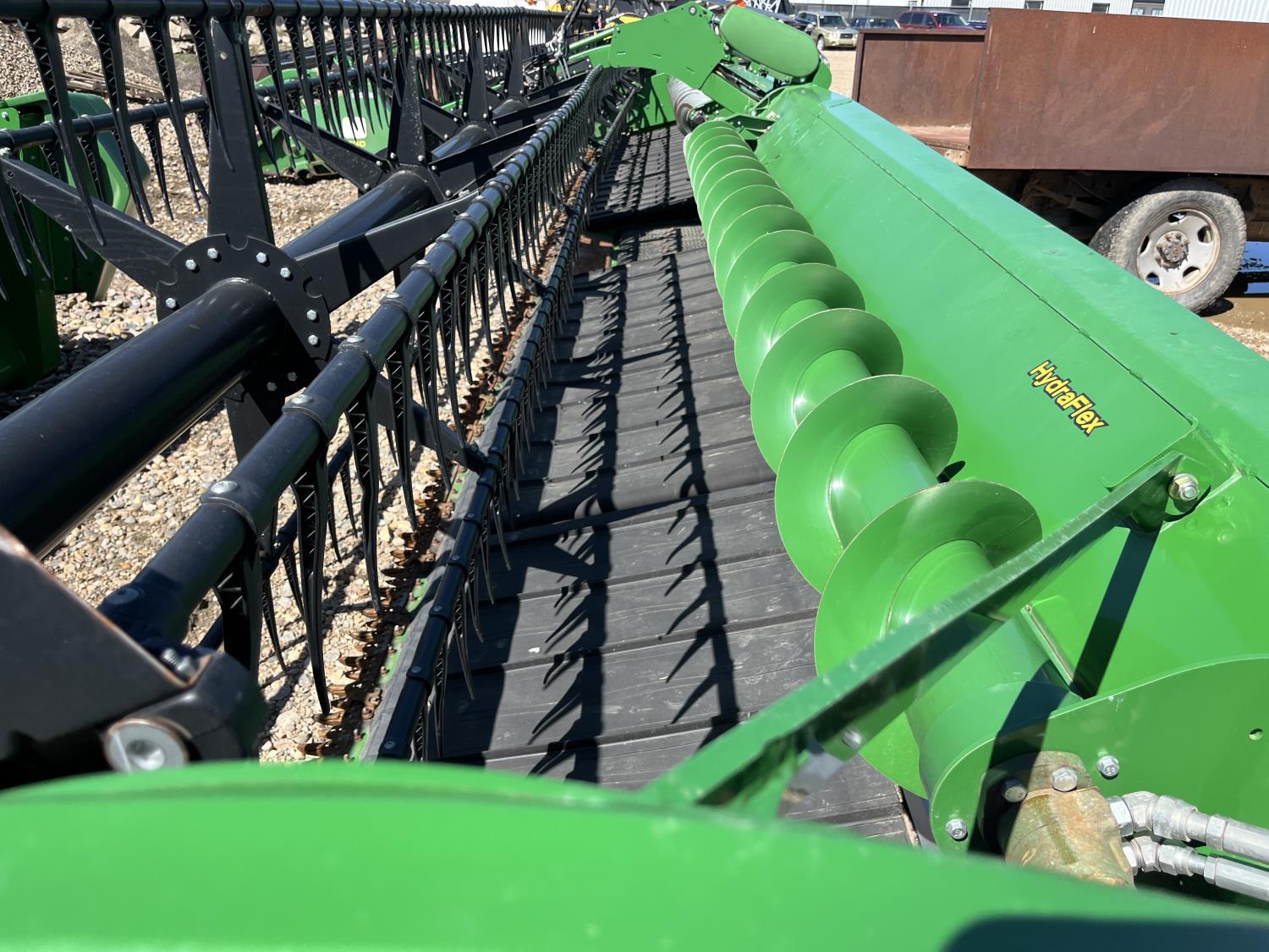 split pickup reels, hydraulic fore & aft, double knife drive, cross auger, poly skid plates, single point hookup, to fit John Deere S680