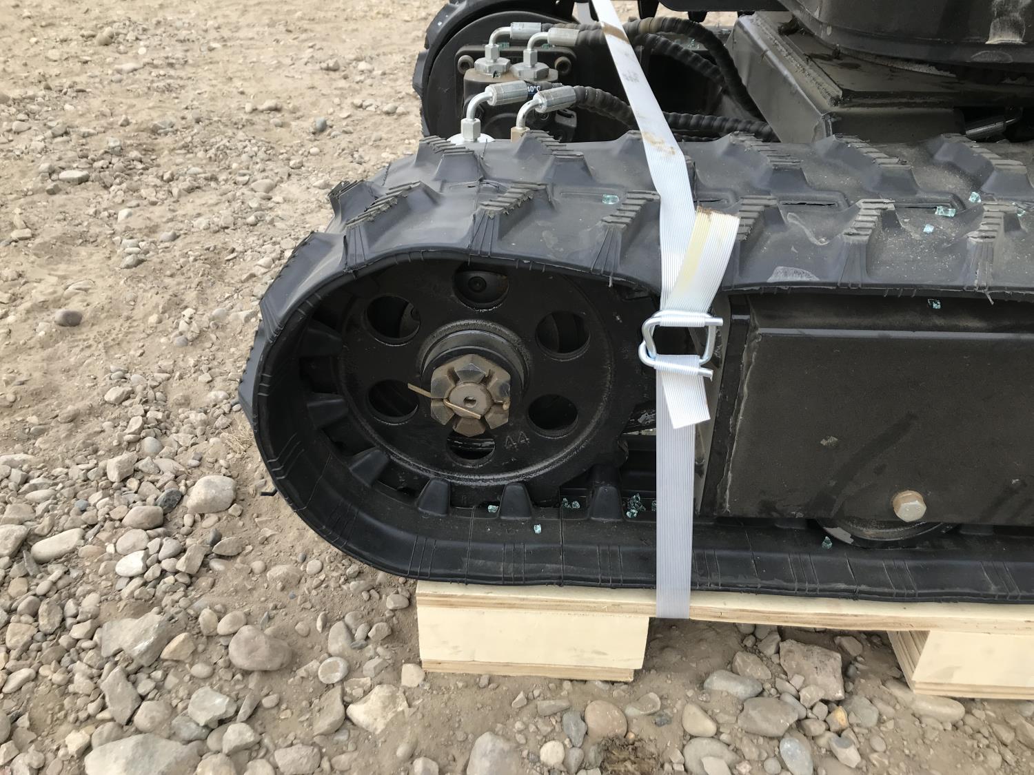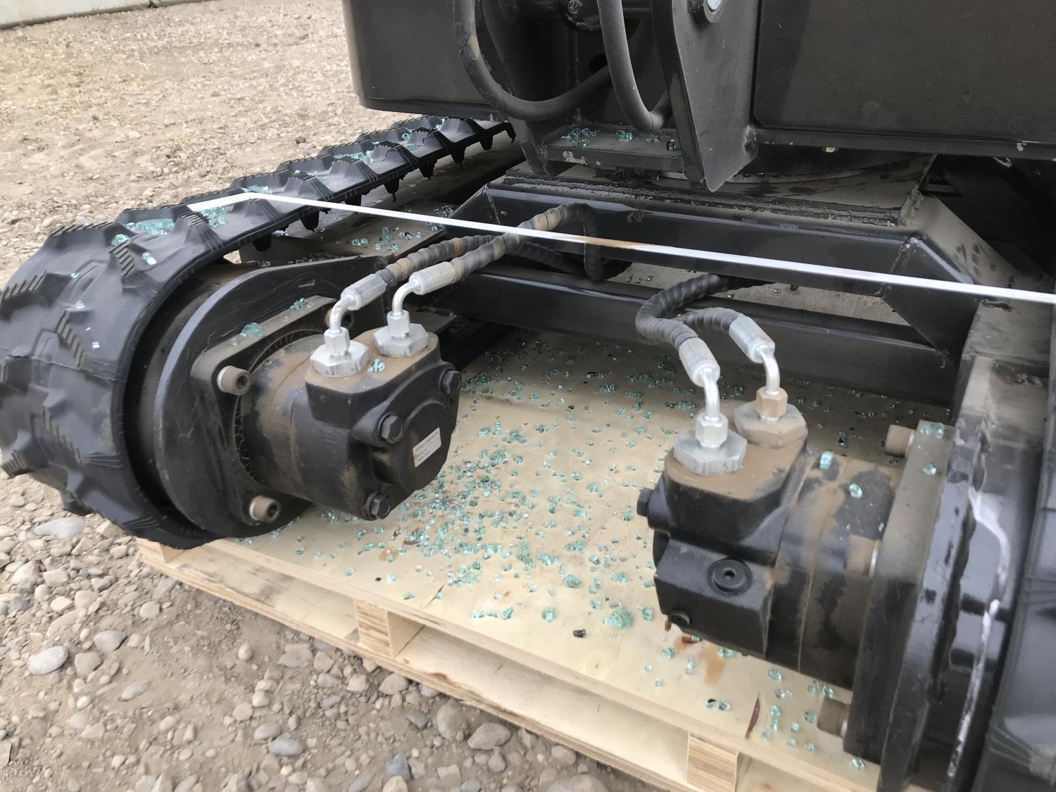 Enclosed cab, gas engine, 17 inch dig bucket, manual coupler, manual thumb, 28 inch stick, 7 inch rubber tracks,
