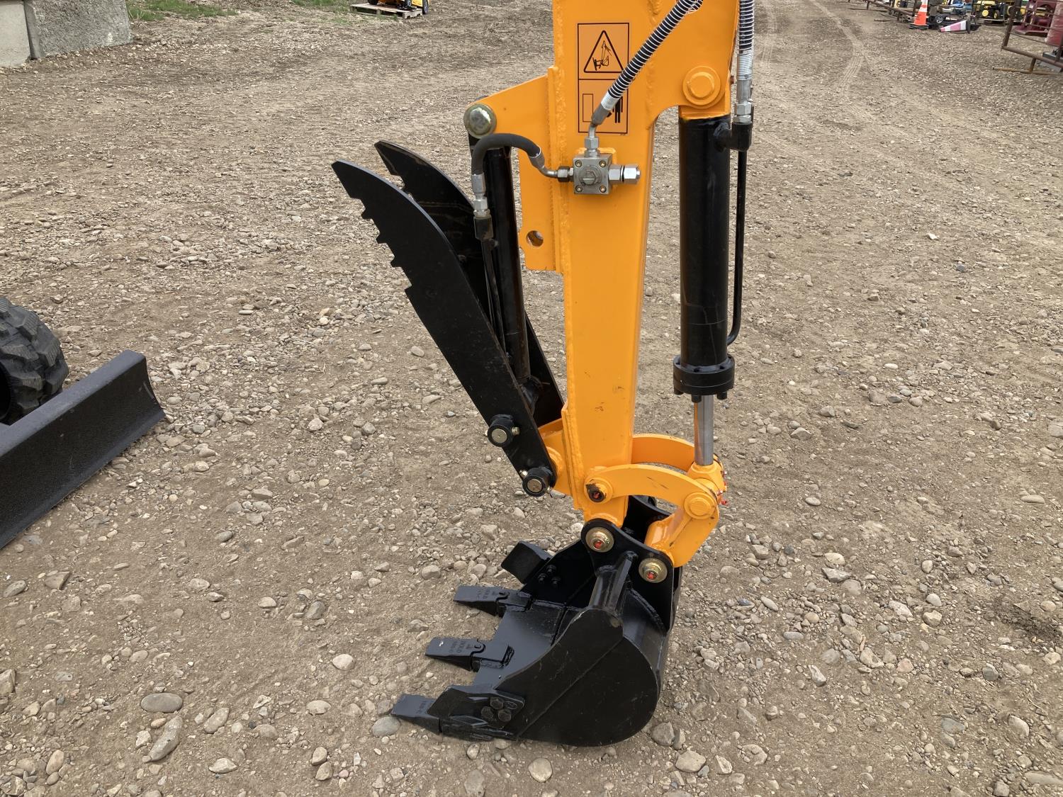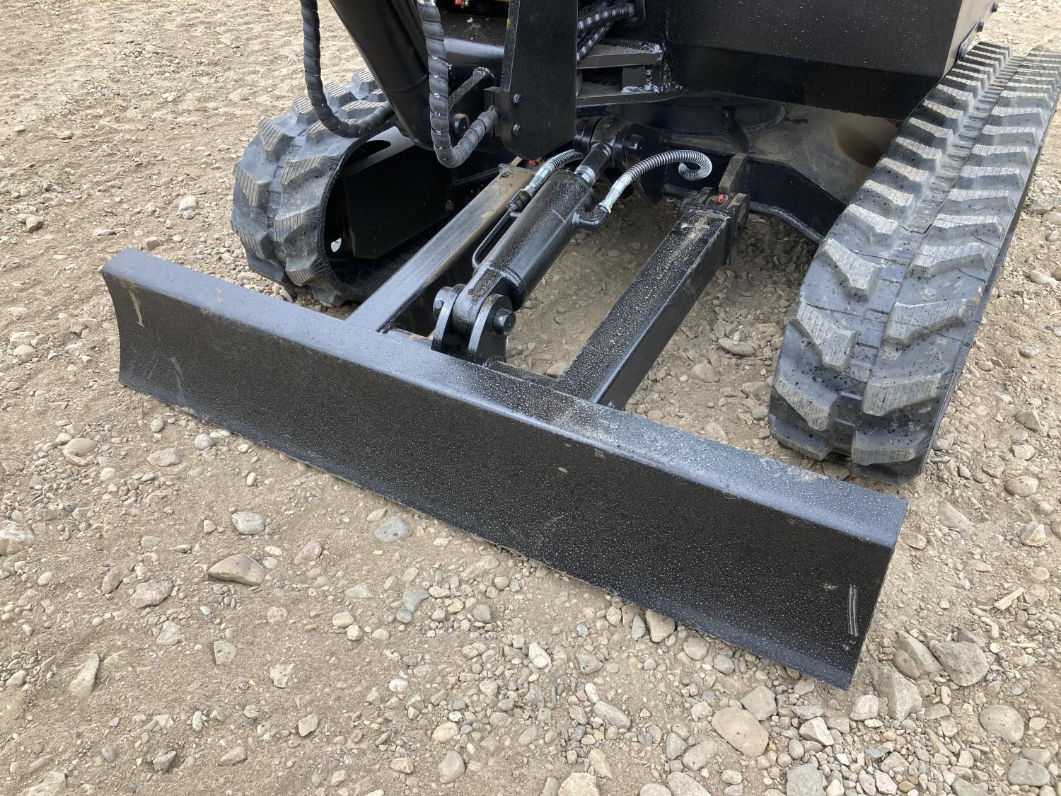 Enclosed cab, 20 inch dig bucket, manual coupler, hydraulic thumb, 46 inch stick, backfill blade, 9 inch rubber tracks