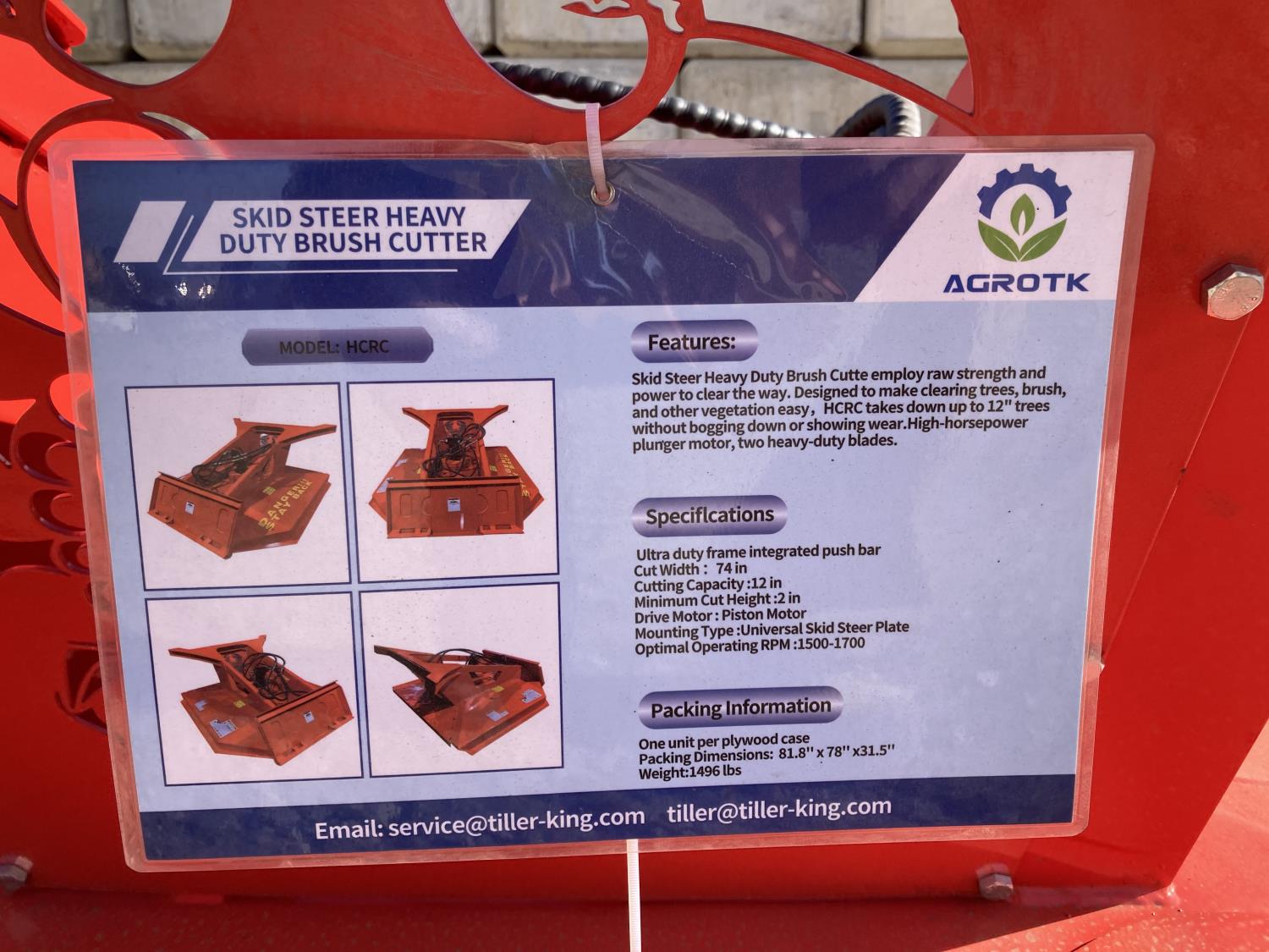 487 2024 Topcat AGT-HCRC 74 Inch Heavy Duty Skid Steer Brush Cutter (Unused)