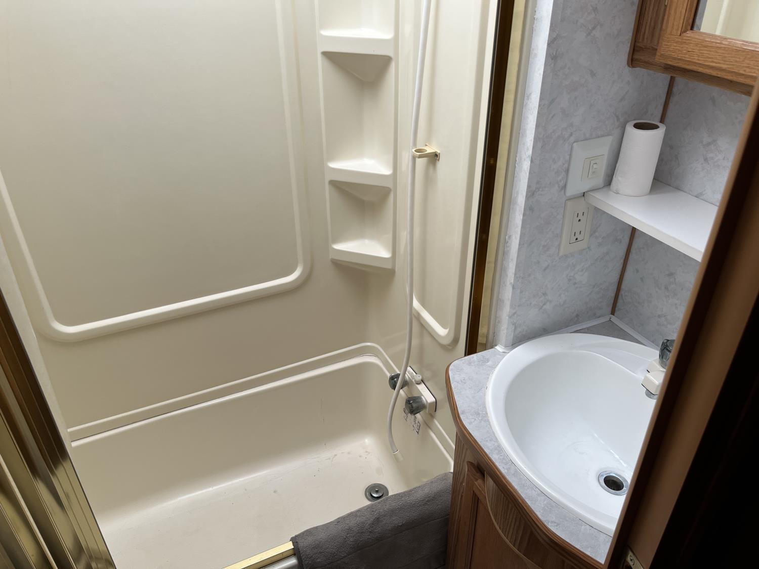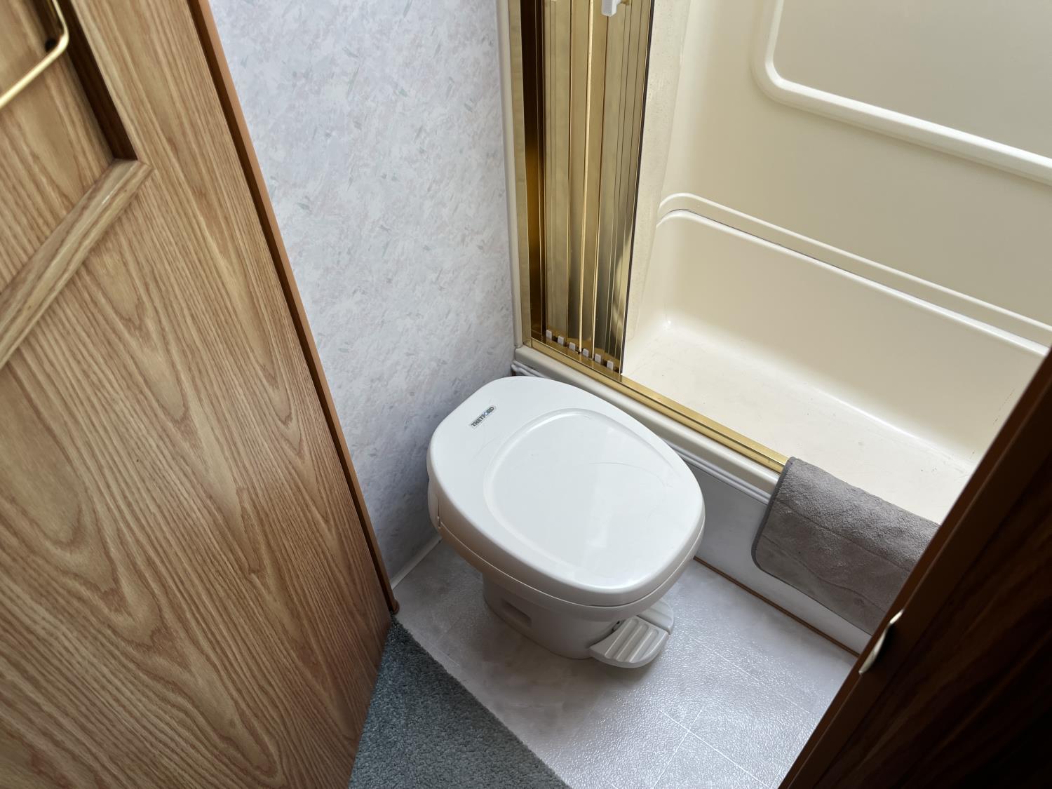 stove, fridge, microwave, full bath, A/C, 1 slide, manual awning, 225/75R15 tires