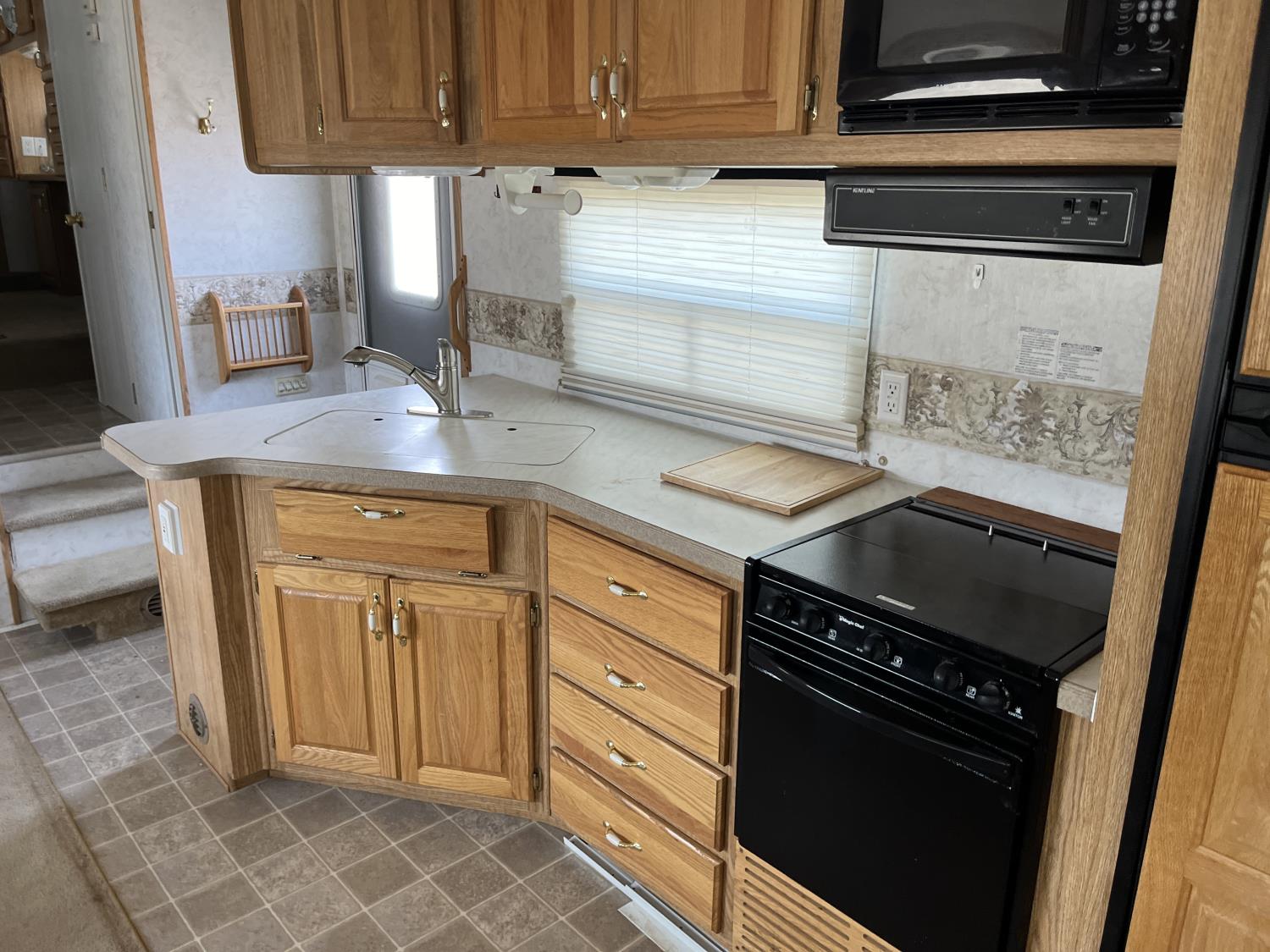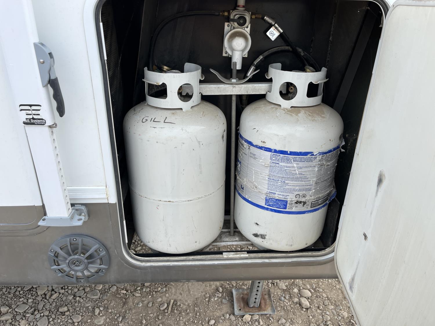 Sleeps 4, stove, fridge, microwave, full bath, master bedroom, 2 slides, manual awning, 235/85R16 tires