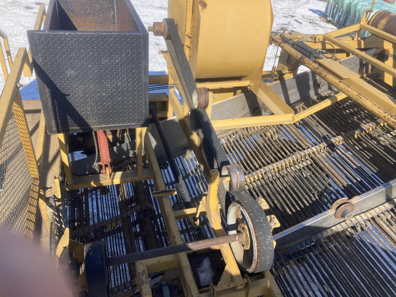 69 inch primary/secondary devine belted chains, 42 inch rear cross and side elevators belted chain, finger rollers, vine blower, 1000 PTO, 13.00-24 tires, 9.5L-15 tires