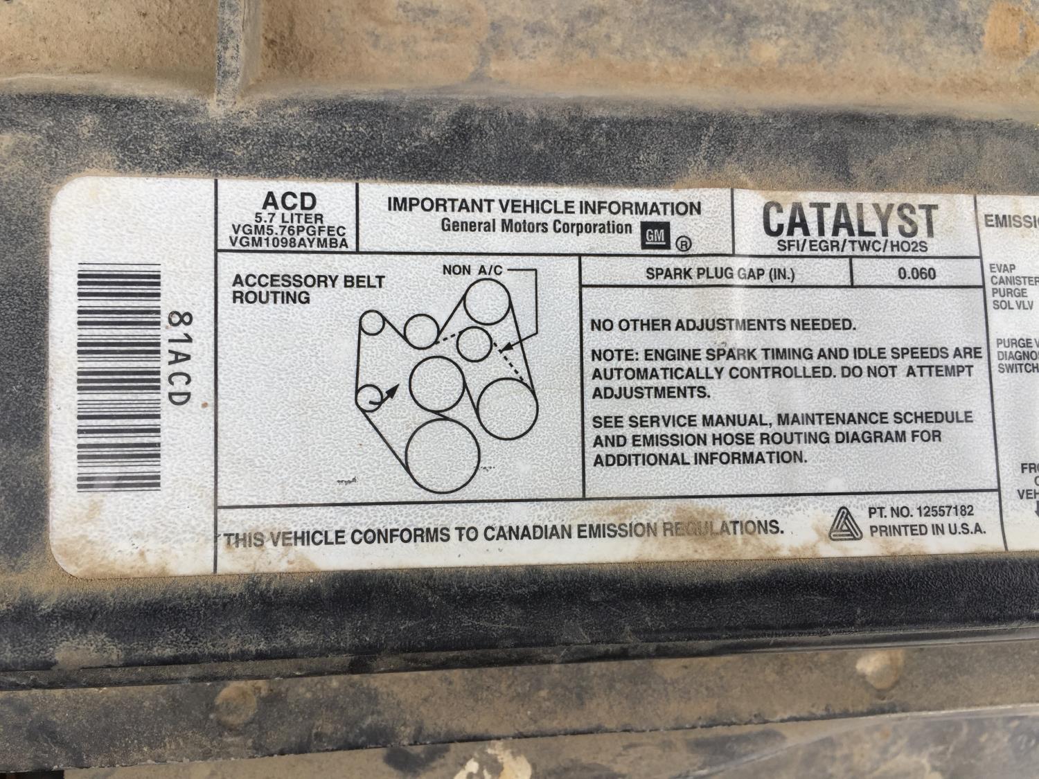 5.7 L, V8, gas, automatic transmission, P/W, P/L, 245/75R16 tires