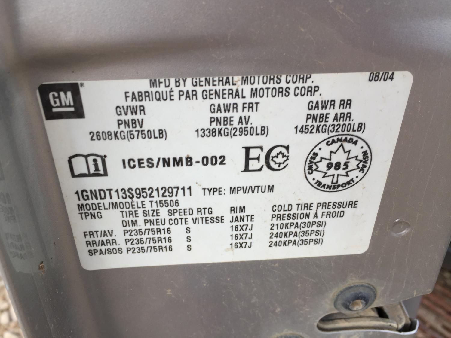 - 1GNDT13S952129711