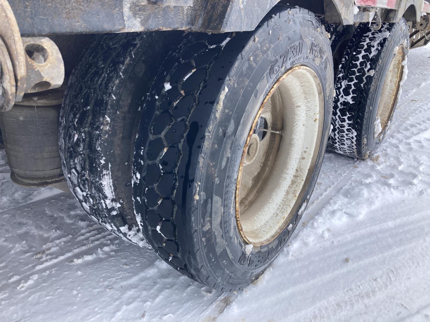 96 inch wide deck, 132 inch upper deck, wood deck, stake pockets, rub rails, cargo winches, air scales, air brakes, 42 inch beaver tail w/ folding ramps, air ride suspension, 255/70R22.5 tires