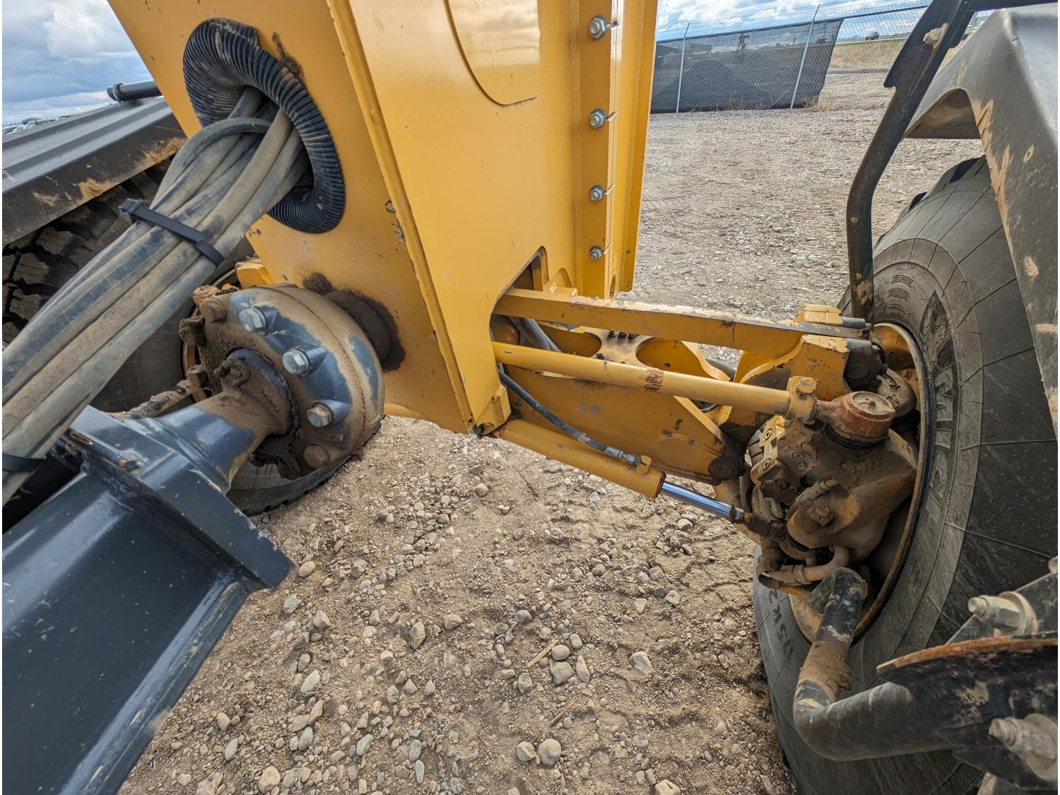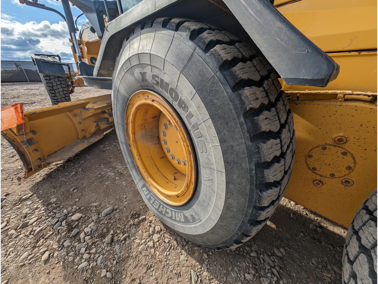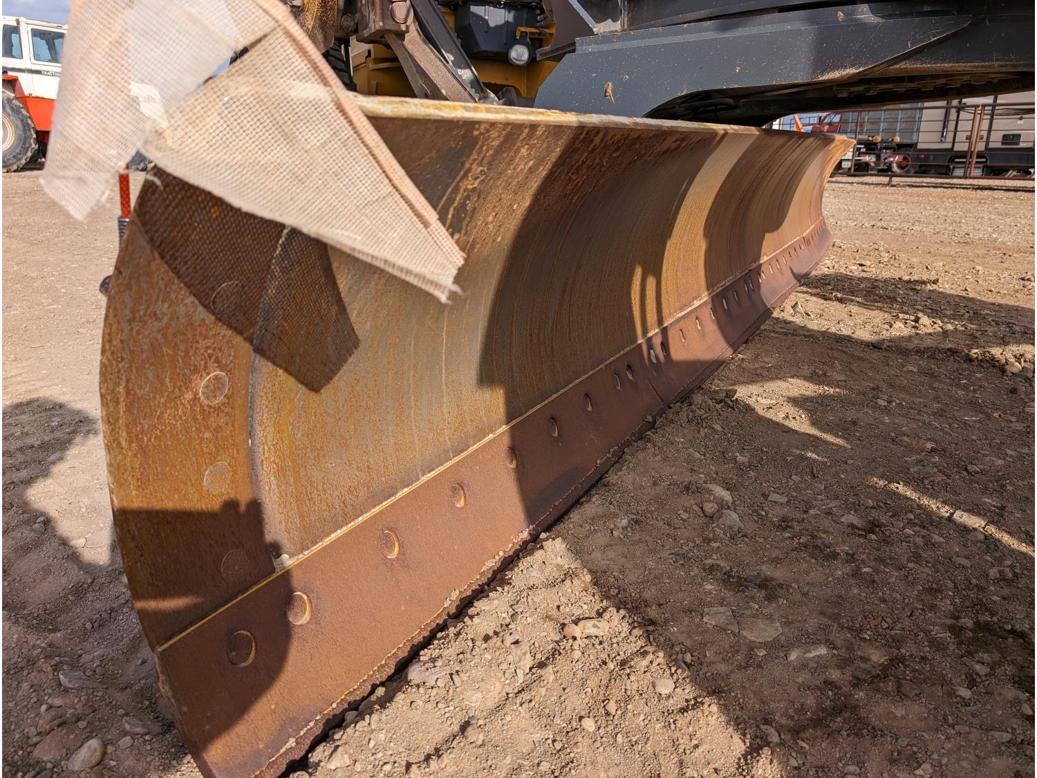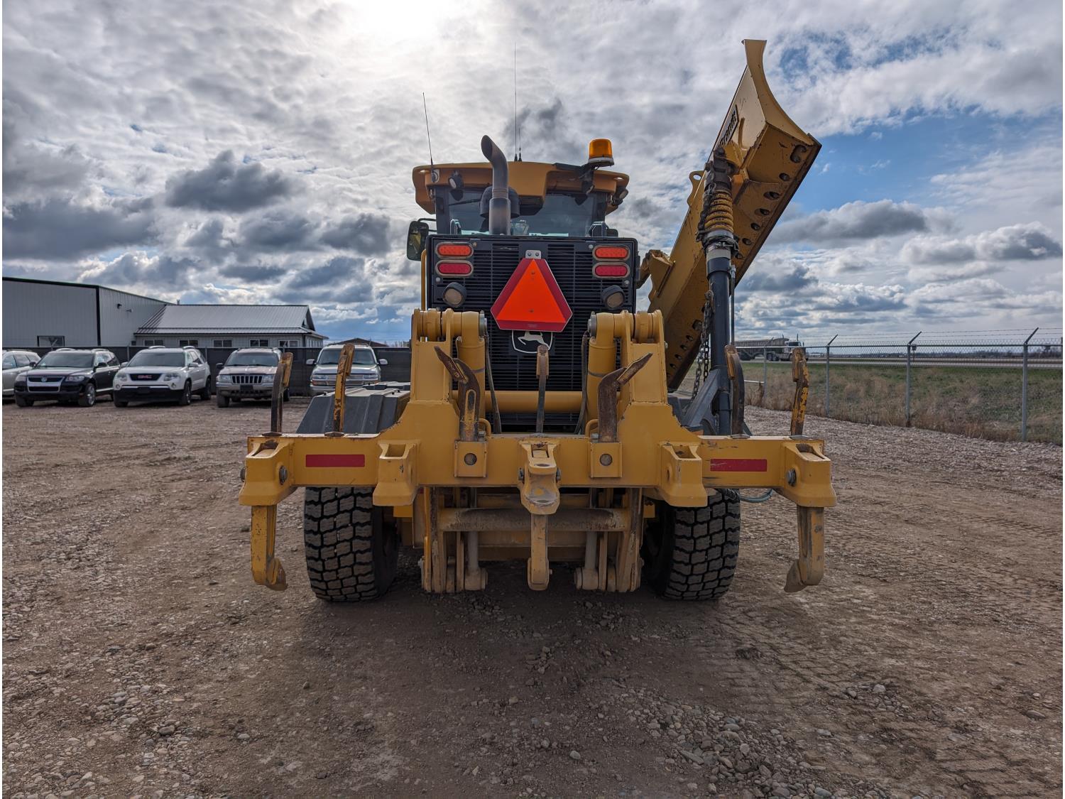 Enclosed cab, A/C, air ride seat, differential lock, 14 Ft moldboard, 2 Ft moldboard extensions, rear ripper / scarifier, front auxiliary hydraulics, snow wing, 17.5R25 tires