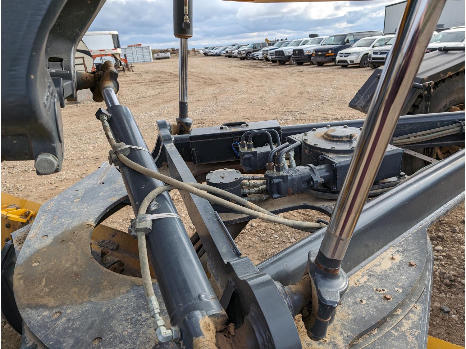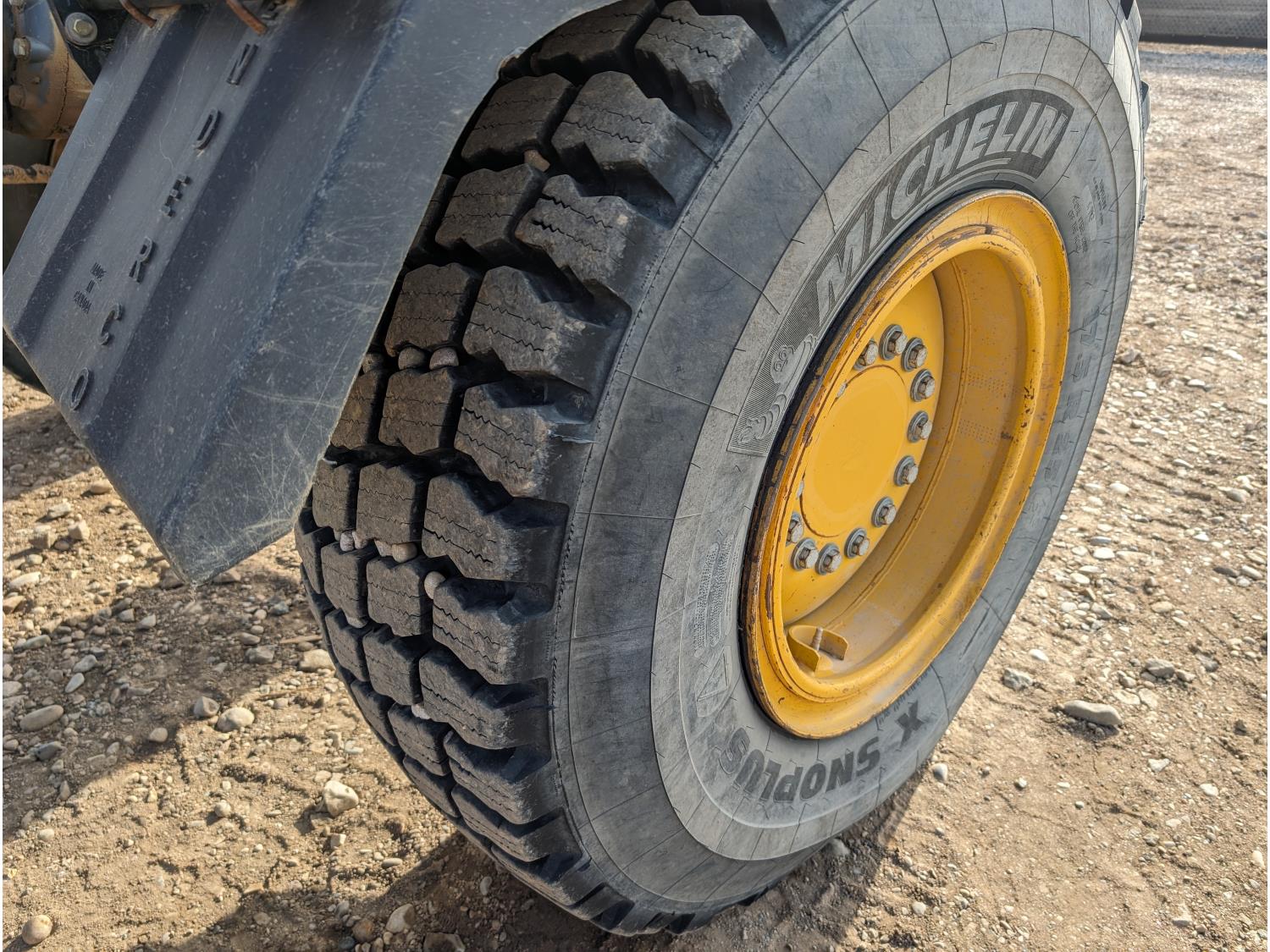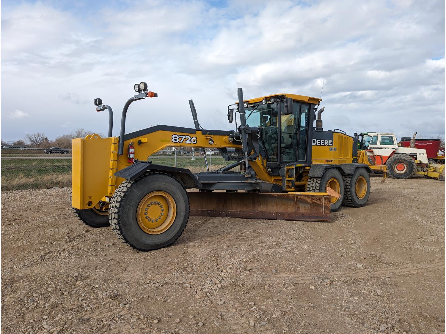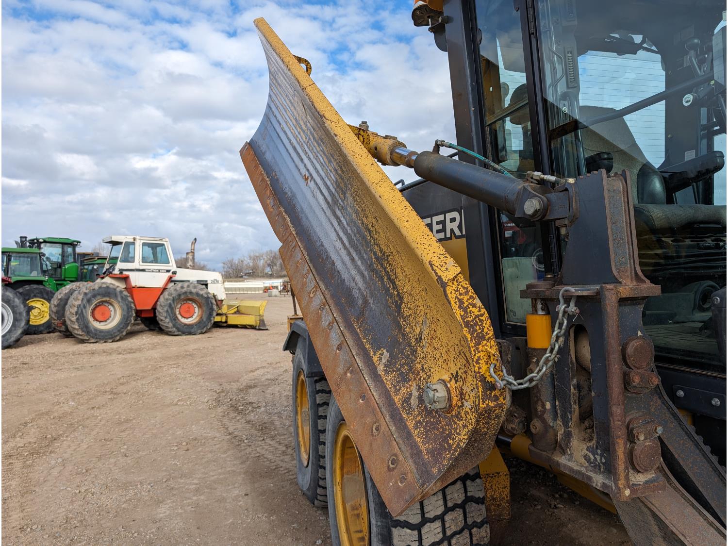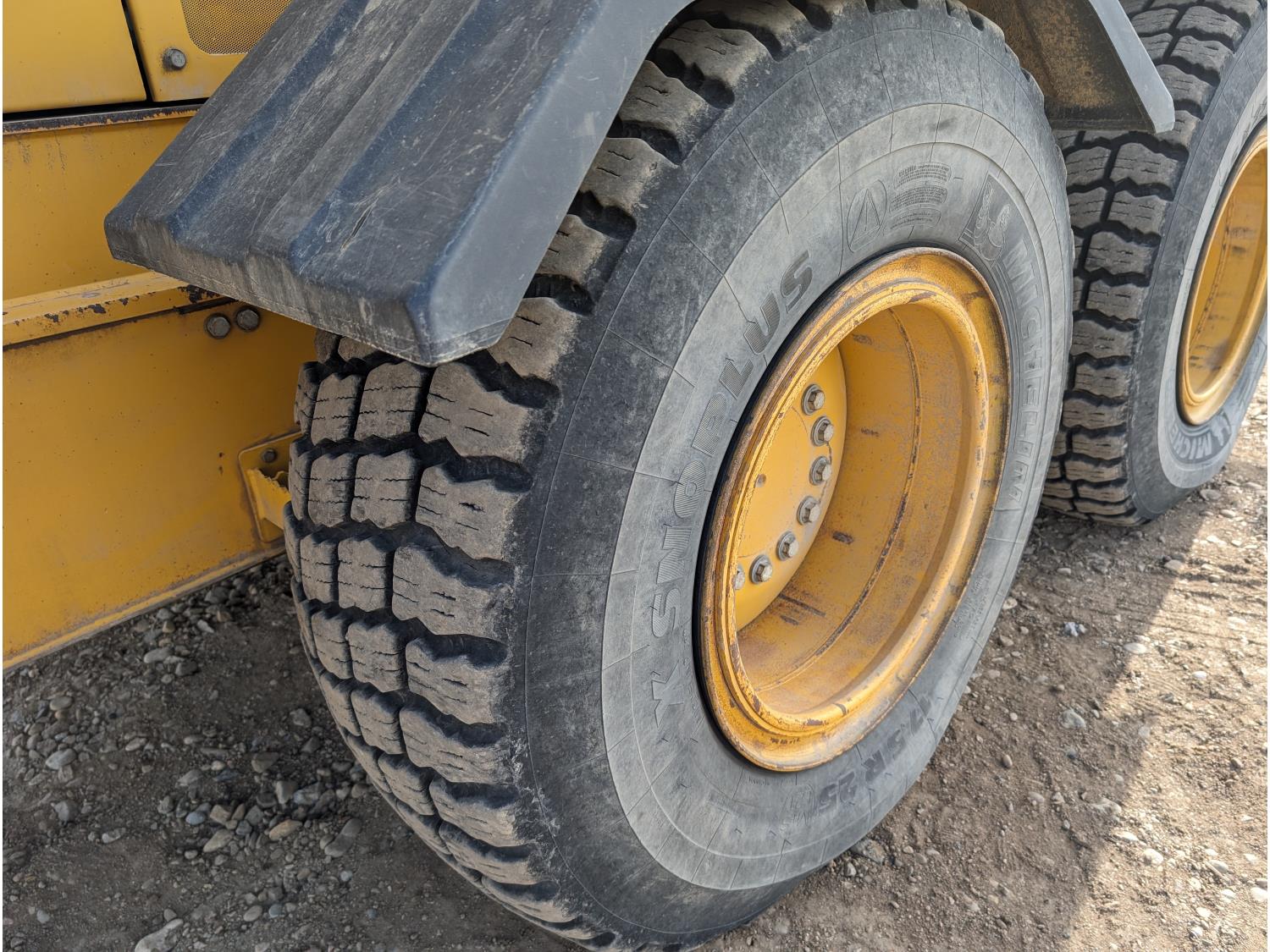 Enclosed cab, A/C, air ride seat, differential lock, 14 Ft moldboard, 2 Ft moldboard extensions, rear ripper / scarifier, front auxiliary hydraulics, snow wing, 17.5R25 tires