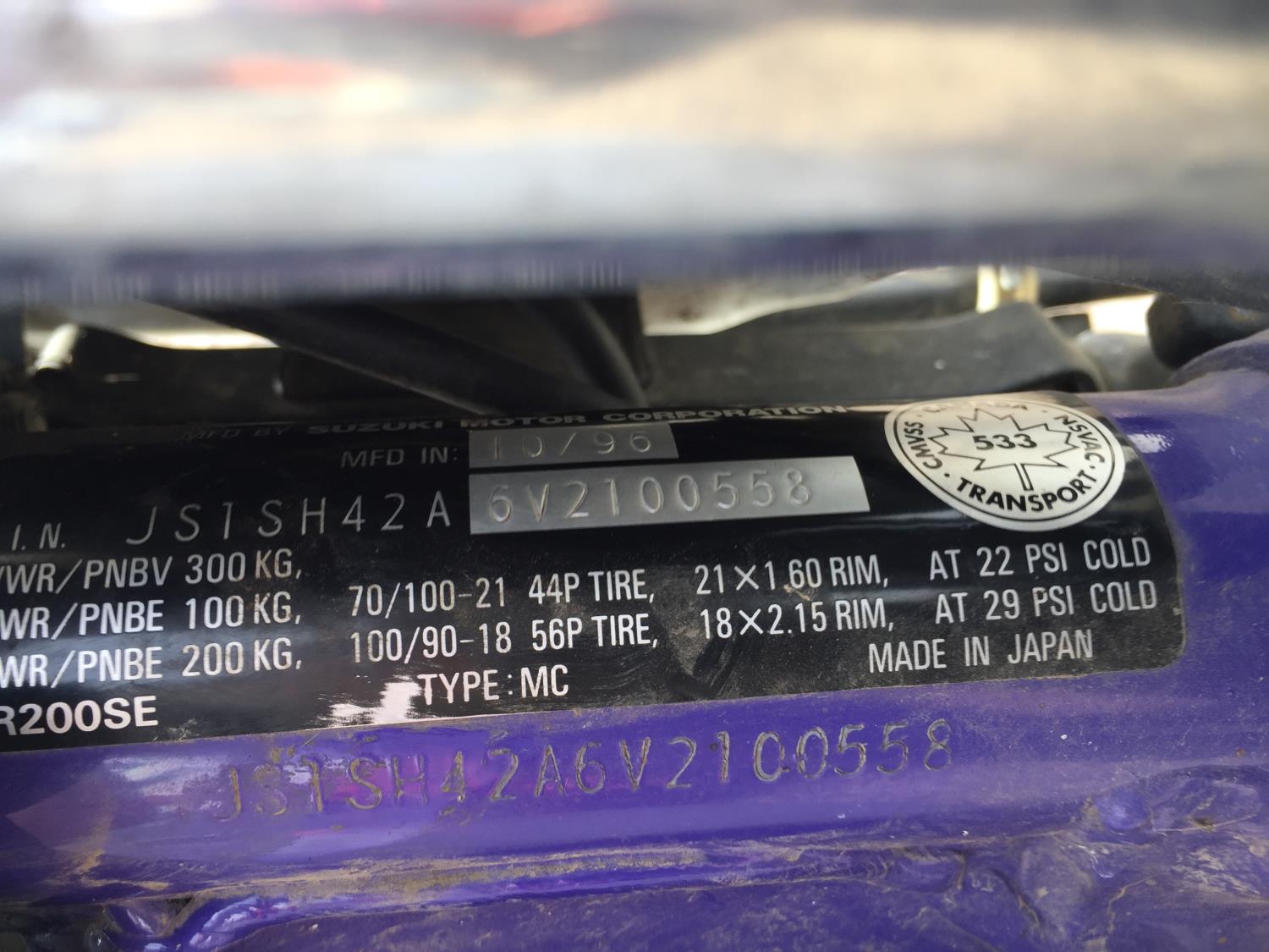 91 1997 Suzuki DR200 Dirt Bike