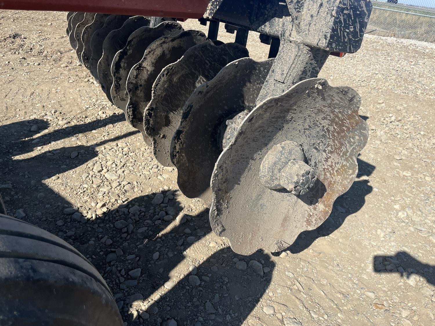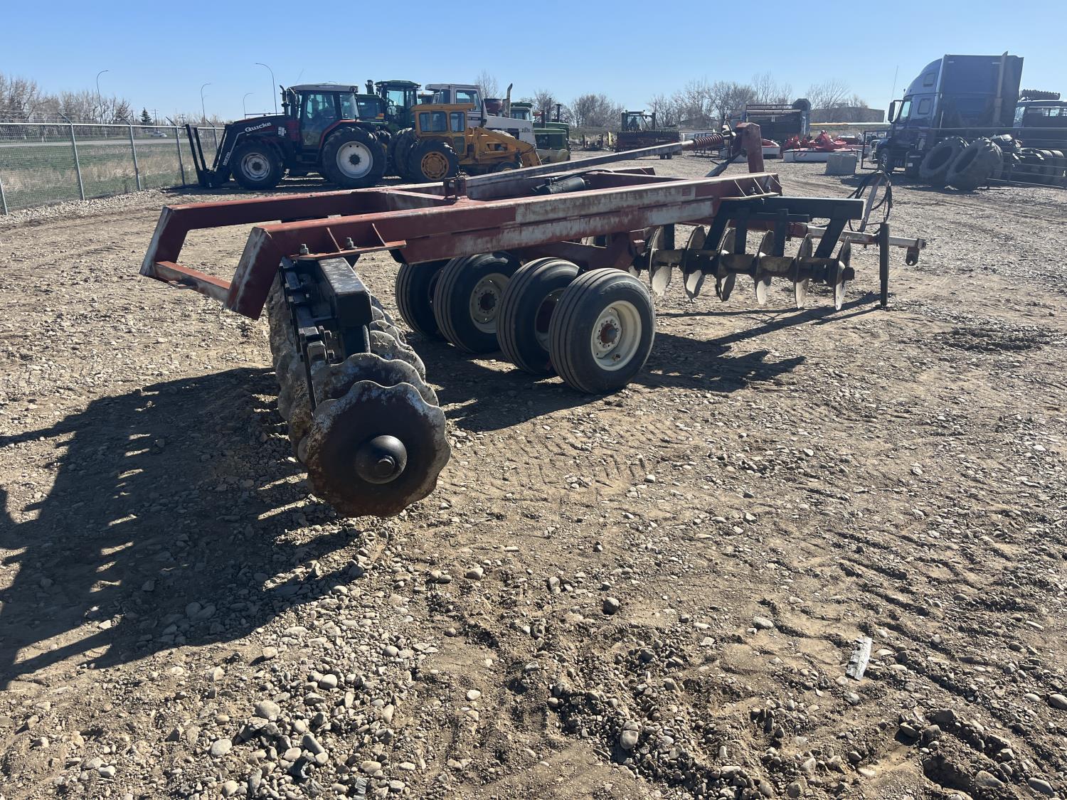 front: 10 inch spacing notched 24 inch discs, rear: 10 inch spacing notched 24 inch discs, 9.5L-15 main frame tires