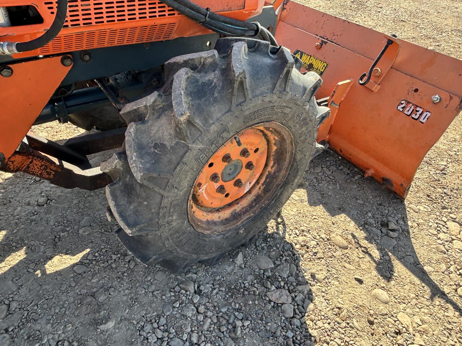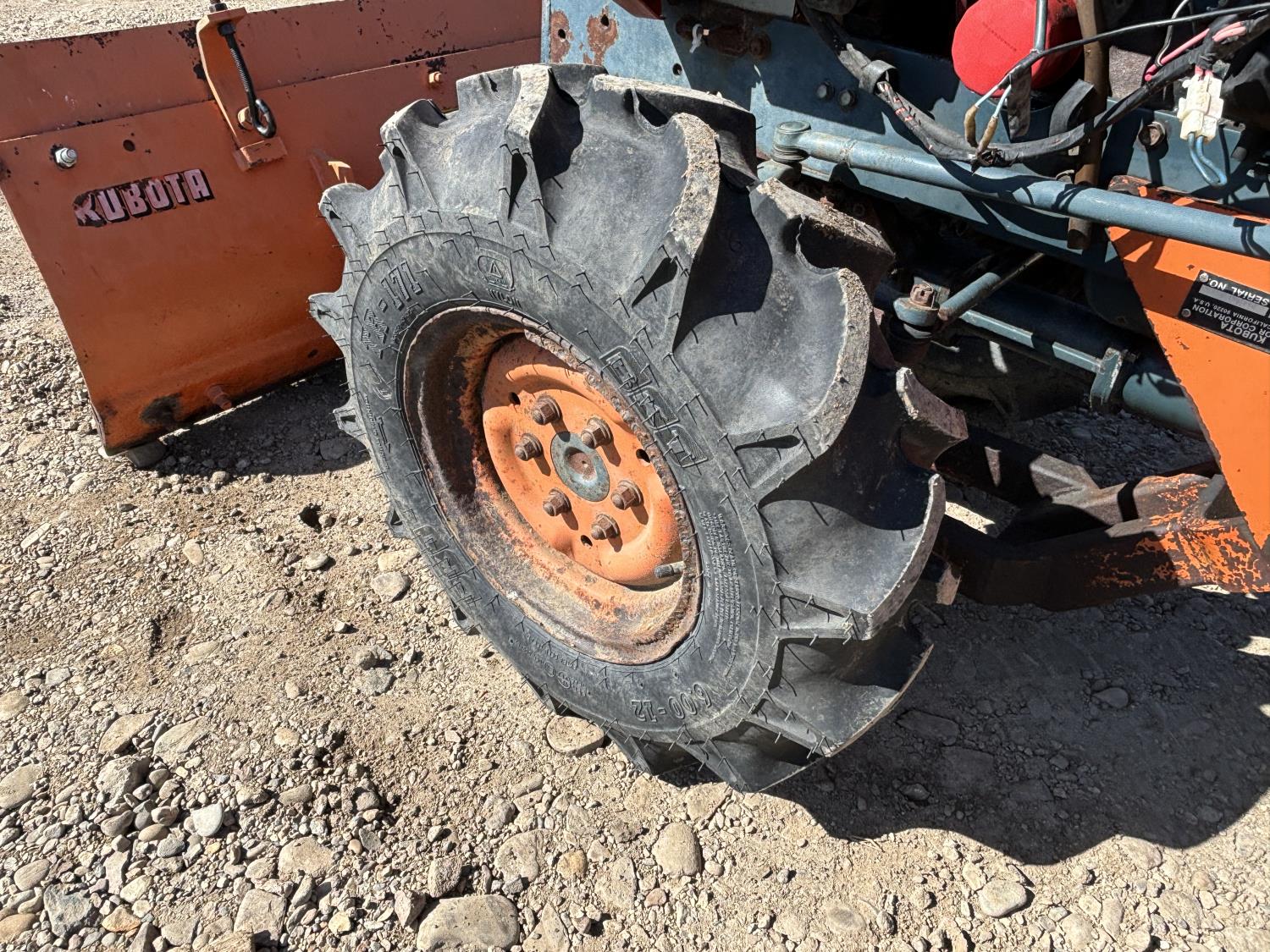 Kubota 0.9 L 3 cylinder 15 HP, diesel engine, 12.5 PTO HP, 3 speed manual transmission, open station platform, 48 inch 2 way blade, 540 PTO, 3 point hitch, 8-6 front tires, 6.00-12 rear tires