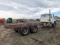 Ford 240 7.8 L 6 cylinder diesel engine, Road Ranger RT6610 10 speed manual transmission, air ride driver seat, spring suspension, 12,000 lb front axle, 38,000 lb rear axles, diff lock, 232 inch WB, 260 inches from back of cab to end of frame, 11R22.5 tires