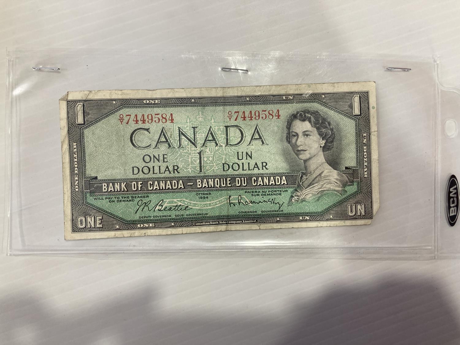1020 1954 Canadian One Dollar Bill