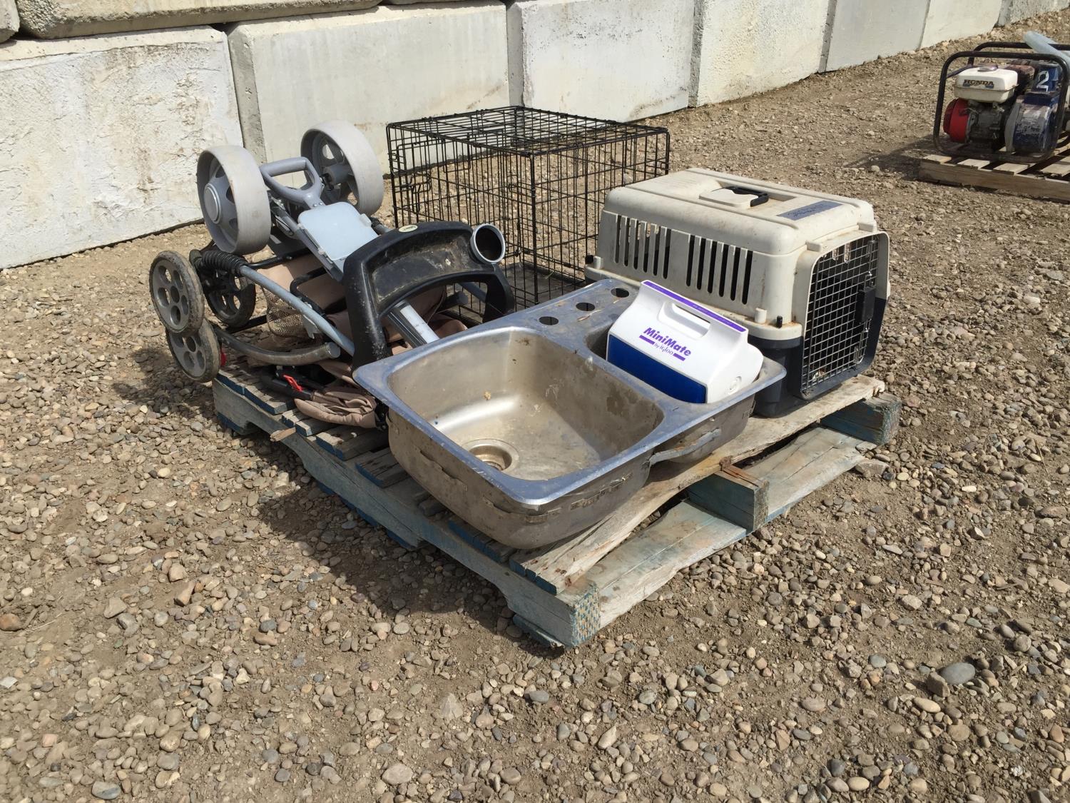 1443 (2) Animal Cages w/ Golf Cart and Sink