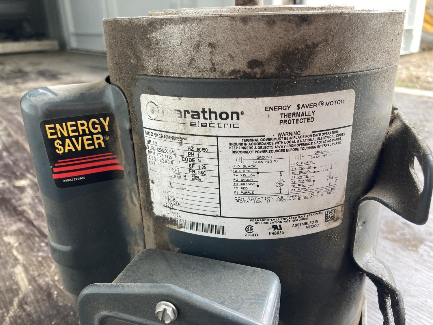 1/2 HP, 60 Hz, Single Phase